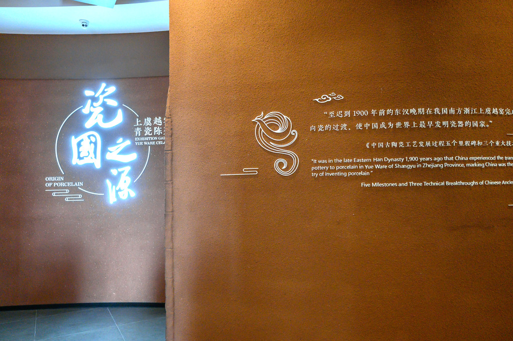走近陈列馆后,可以看到"瓷国之源"四个大字,中国是世界上最早发明瓷器的国家,西方人了解中国也是从瓷器等开始的,在英语中也可以发现,"瓷器"与"中国"同为一词,而当时中国的瓷器(青瓷)最早也就是诞生于上虞,为当时的越窑,称之为越窑青瓷。