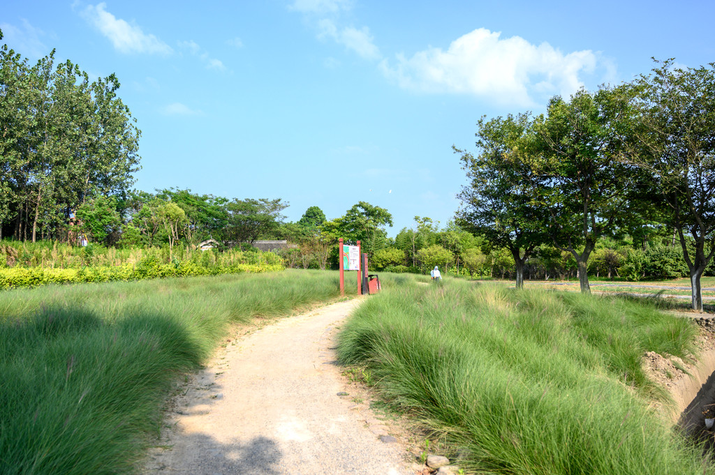 途中林木葱郁,尤其是公园的名字比较奇特,带有遗址、考古等字样,此时自己似乎摇身一变成一名考古工作人员,穿梭在丛林之中,探索发掘古遗迹。
