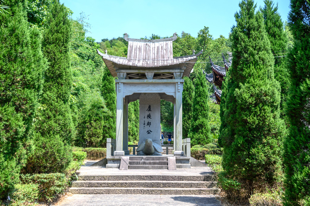 在神道中间位置建有一座花岗岩碑亭,石碑之上题刻有“庐陵郡公”四个大字,为谢安死后所追封。