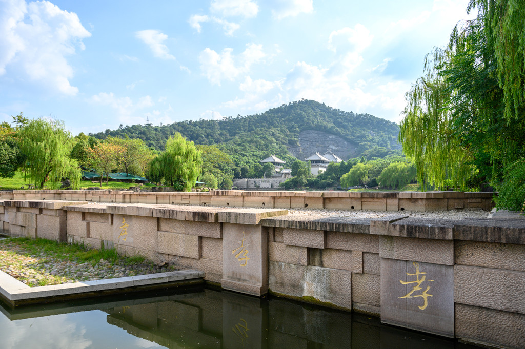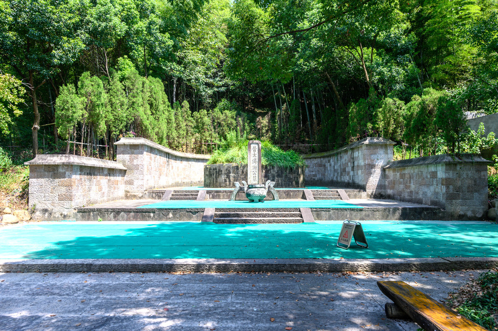 墓地旁还有一口清泉,为“始宁泉”,泉水碧绿似玉,池中莲花盛开,加之周边古樟松柏,环境非常幽静,石象、墓和始宁泉共同构成了谢安墓的景观。