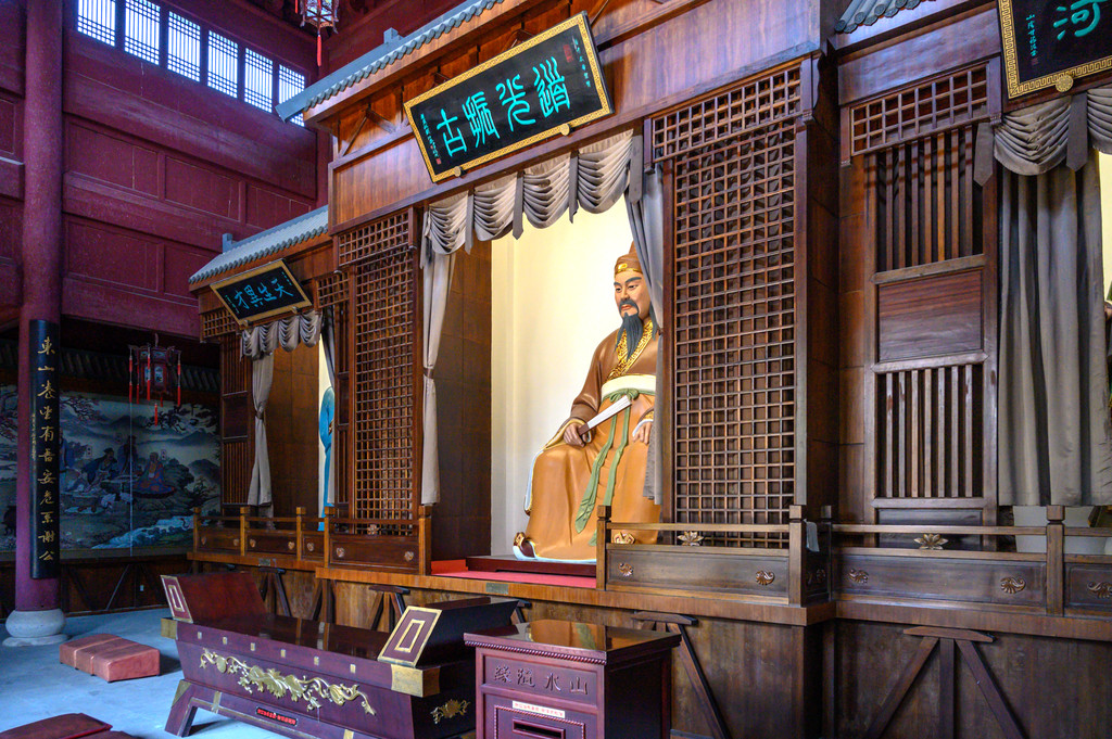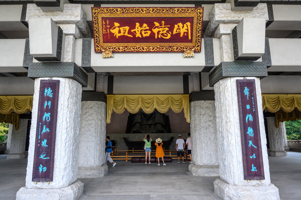 踏过御道走进大殿之中,眼前所看到的青铜雕塑就是舜帝,整个青铜像高7.5米,造型格外的威武但给人的感觉也十分的亲切,只见舜帝右手扬起,仿佛在召唤子民,目光威严而仁慈,为整个大舜庙的灵魂所在。