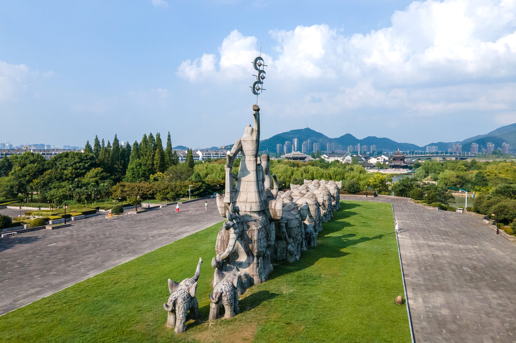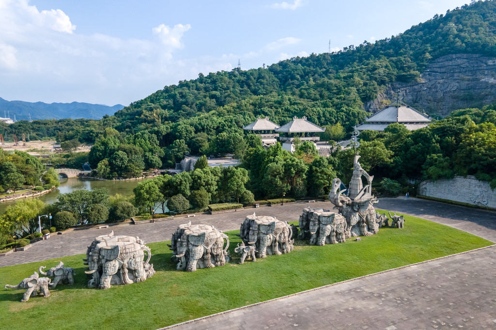 走出大舜庙便来到了又一个核心景点,它就是舜耕群雕,是整个中华孝德园的镇园之宝,其设立理念以“象耕鸟耘”的典故,由15个石象组成,全长68米、最高处27米,为亚洲最大的群雕石象,若是游人站在大象脚下,则会显得格外的渺小,这也足以体现出其壮观程度。
