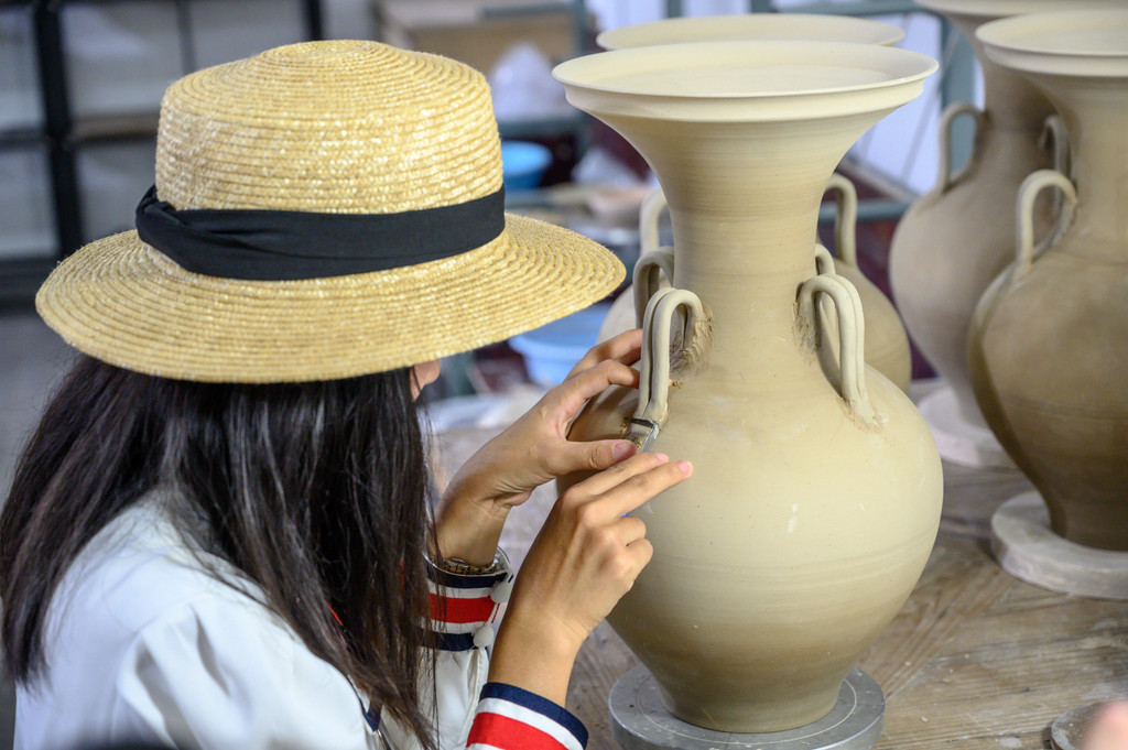 在上虞乃至绍兴,“研学游”成了当地比较新潮的旅游体验新方式,每天都有来自不同学校的学生来到这里,不仅可以学习了解到青瓷的历史,还可以体验到动手制作陶瓷的乐趣,进一步提升了学生的动手能力。