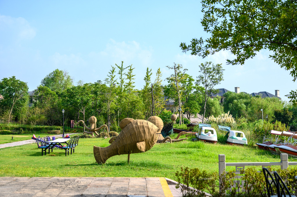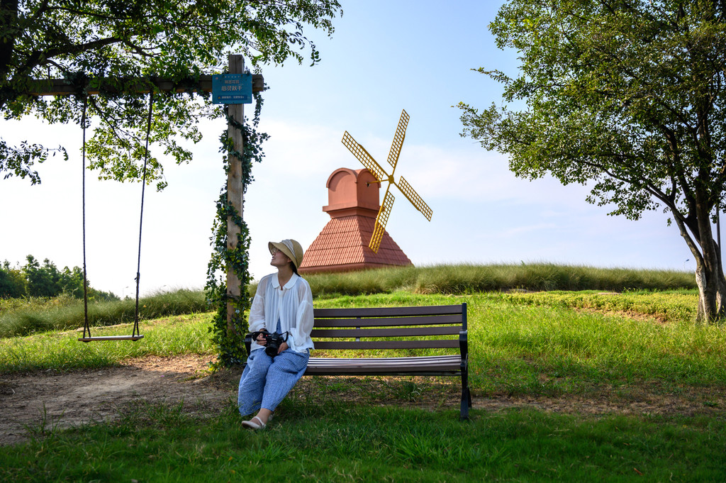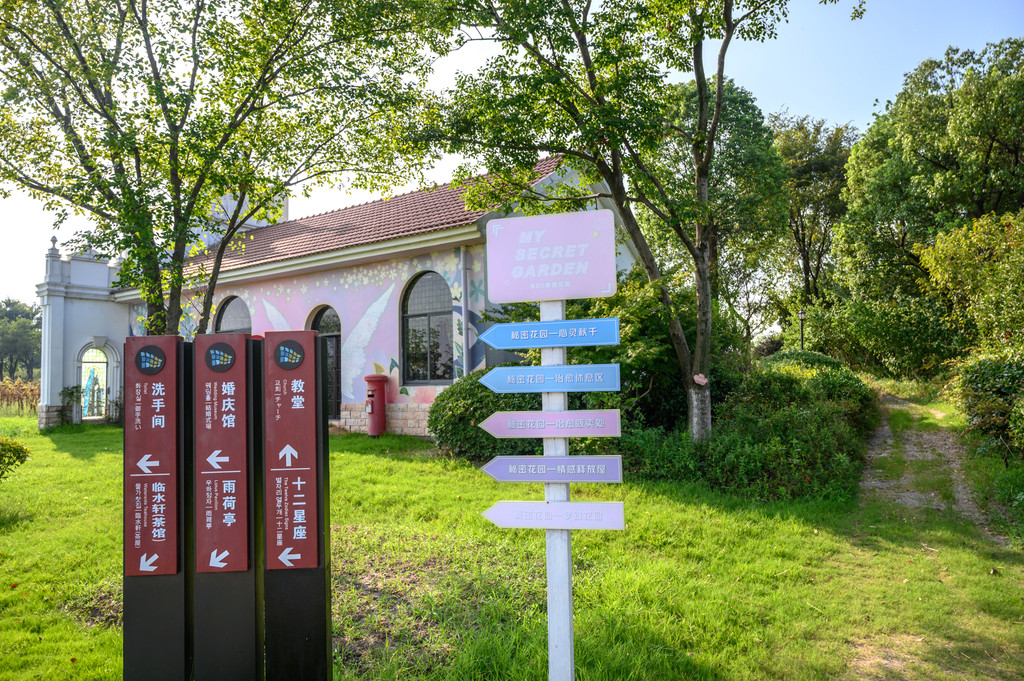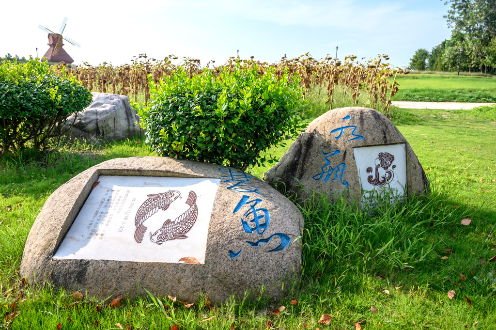 教堂前的草地中还有十二生肖石,不远处还有秋千、横椅及荷兰风车,所有的元素都在表明一个问题,这里是一片充满爱意的地方,一个让人流连忘返的爱情圣地,未来的这里绝对会成为上虞、杭州湾的网红打卡地。