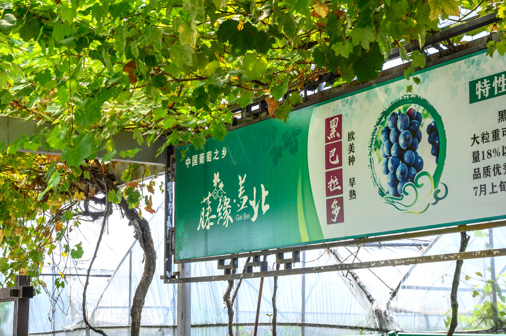 盖北镇不仅是葡萄种植基地,如今更是成了一处旅游观光的新型景点,每逢盛夏葡萄采摘季时,吸引了长三角地区不少游客自驾来到这里尝鲜盖北镇的“野藤葡萄”。