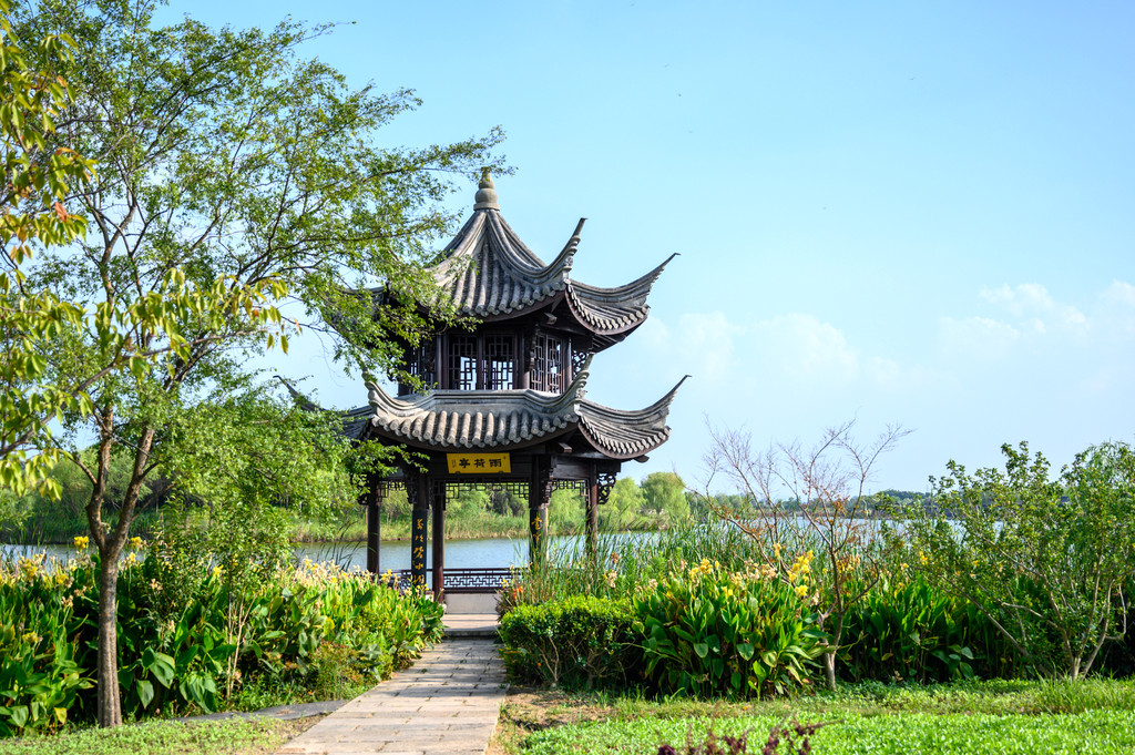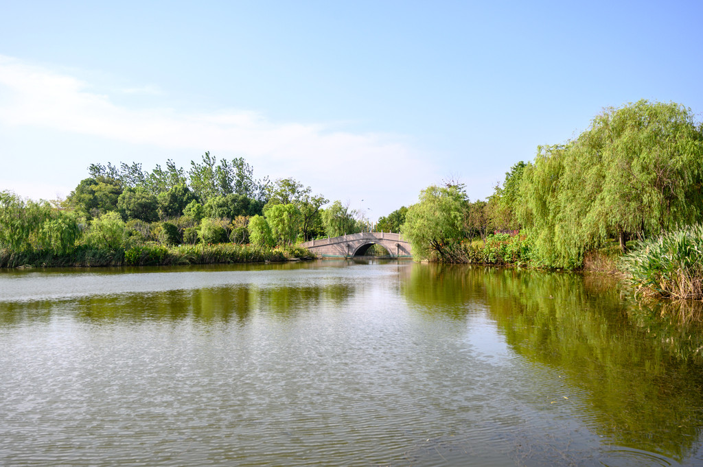 整座考古遗址公园规模颇大,可乘坐观光车游览,途中可看到一座如翡翠般的湖,叫友谊水库,处于考古遗址公园的核心位置。友谊水库修建于1983年,水库水位12.5米左右,水库四周为茂密的水杉林、池杉林所环绕,并打造了一条休闲滨水栈道,使得考古遗址公园不仅是一座文化公园,更是一座风景秀美的观景地。