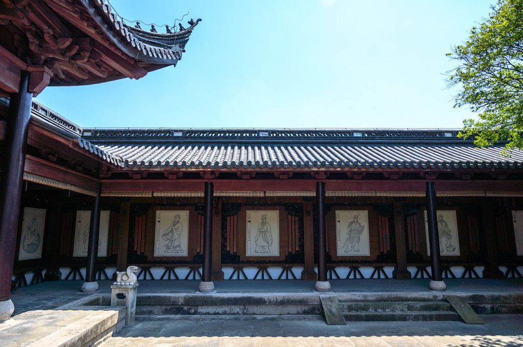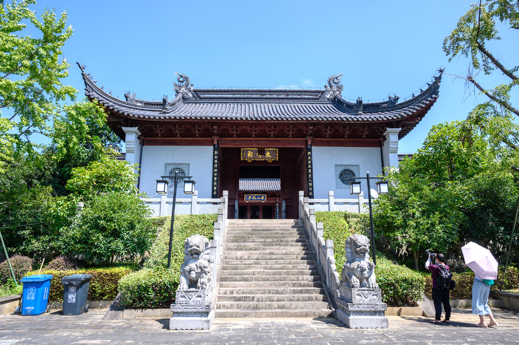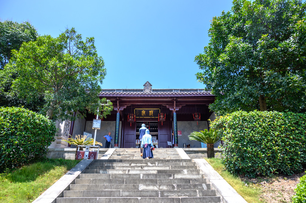 如今的太傅祠占地约8亩,为一座类似于四合院式的建筑群组成,建筑结构古朴且庄重,穿过山门可见主殿,主殿为单层重檐歇山顶结构,造型端庄大气、恢宏壮观,虽然为后期重建而来,给人的感觉也格外的古香古色,或许这就是谢安及谢氏家族给人的那种历史文化底蕴的厚重感所致吧。