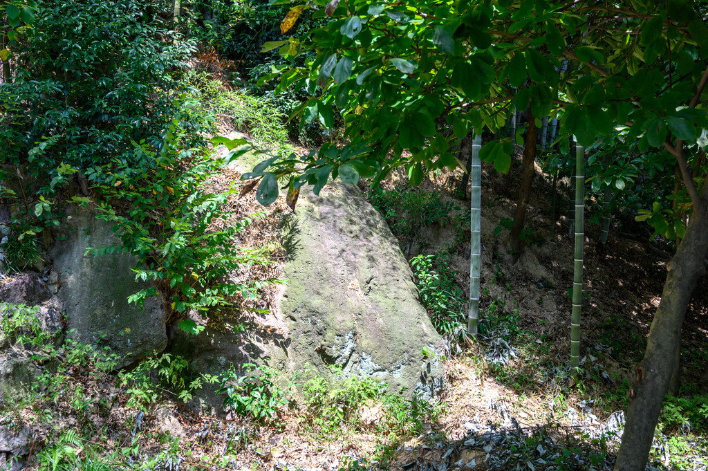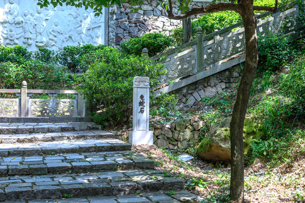 从太傅祠出来后便直接来到了谢安墓,去往谢安墓的途中环境格外幽静,途中遇到了一处“龟蛇石”,因两块凸起的石头与龟、蛇形似而得名。