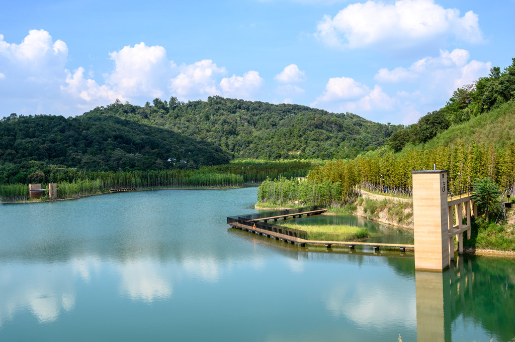 作为上虞新晋的“观光网红坝”,即便是炎热的夏季这里也不乏游客的身影,也使得这片青山绿水整体景观更丰富。