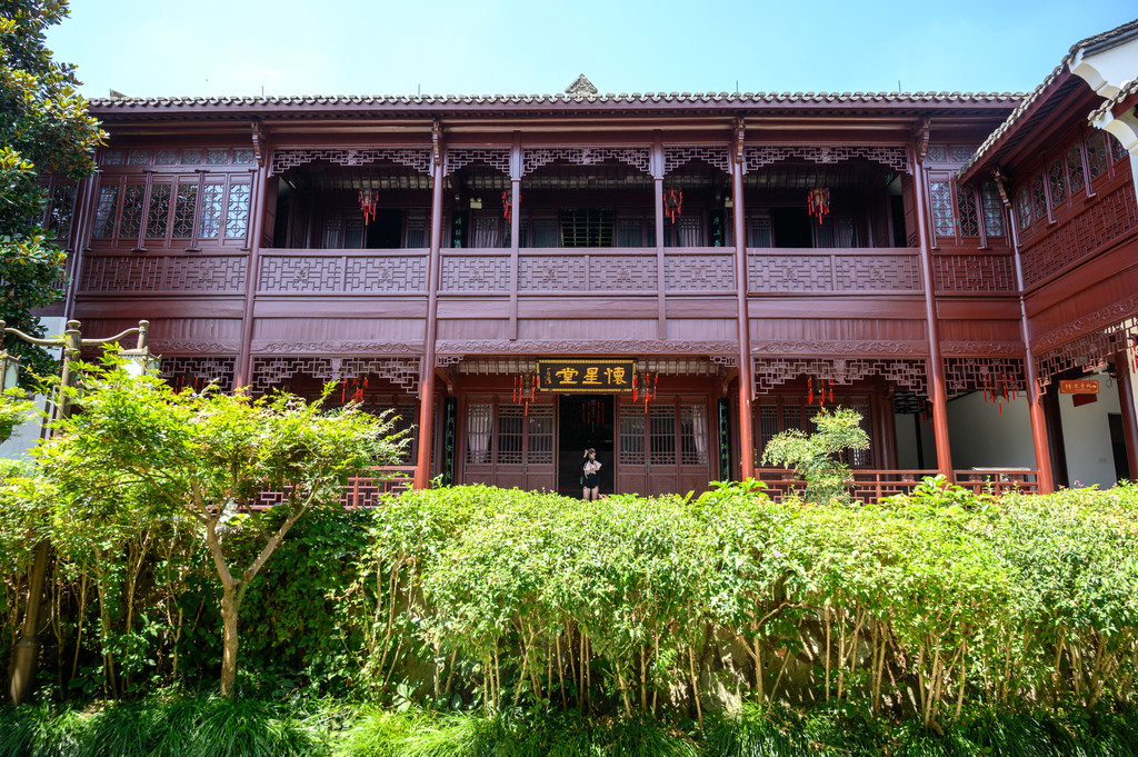 与长廊相连的楼阁为“英台楼”,这里是祝英台主要的生活场所,也是《梁山伯与祝英台》中“楼台会”故事的发生地,整座建筑为两层结构,其中二楼是祝英台的起居室和书房。