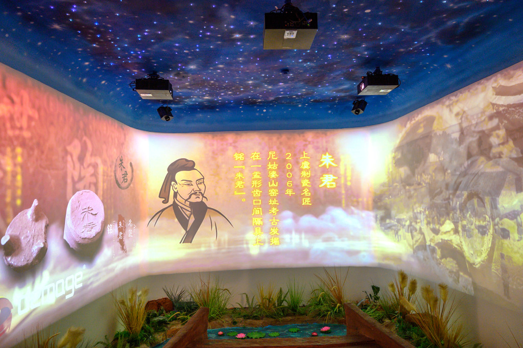 陈列馆大致分为五个部分,序厅、瓷器创烧、独领风骚、窑业全盛和尾厅,通过漫长的历史长卷及现代化投影设备,向参观者淋漓尽致地讲述了上虞越窑青瓷的历史故事。提起瓷器,往往都会想到景德镇,没想到这座江南小城竟然藏着这么多关于瓷器的历史故事。