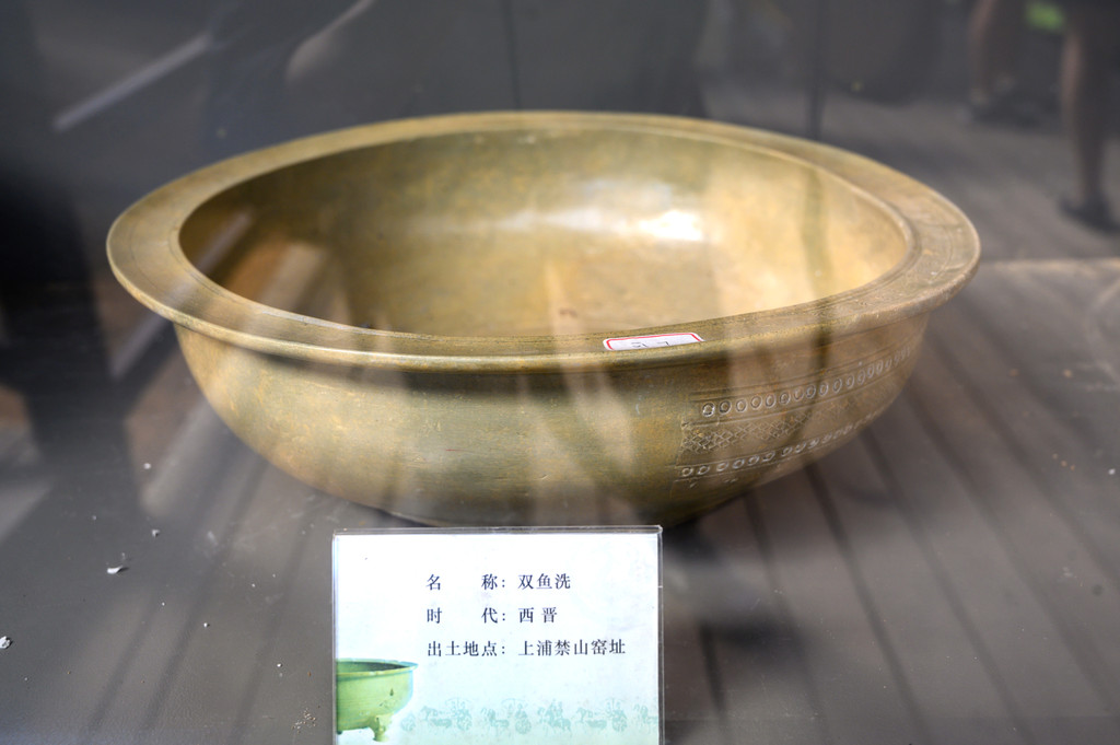 在这里还展示有一些出土的瓷器,眼前这个为西晋时期的双鱼洗,就是在禁山窑址中发掘出土的。现如今,上虞拥有青瓷三级以上的多达221件,越窑青瓷烧制技艺也在传承中,同时也被列入了国家级非物质文化遗产,如今已是上虞文化旅游的一张名片。