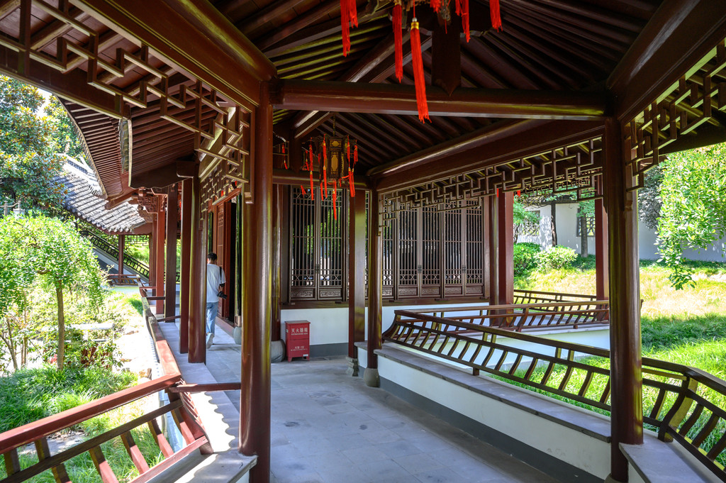 游览过员外楼,本以为就已经结束了,没想到在员外楼一侧还有一条长廊通向后方,后来升起小飞机才发现祝府竟然那般大,且所有建筑皆有长廊相连接,中间还设有凉亭一座,建筑布局十分巧妙。