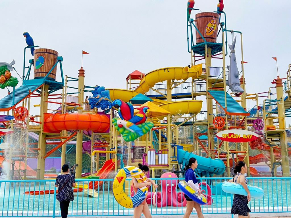 这是一个六月才开放的区域,主要是各种各样的娱乐设施,适合带小朋友来玩也适合带上小姐妹穿上美美的泳衣前来打卡游玩,水乐岛区的主要项目有: