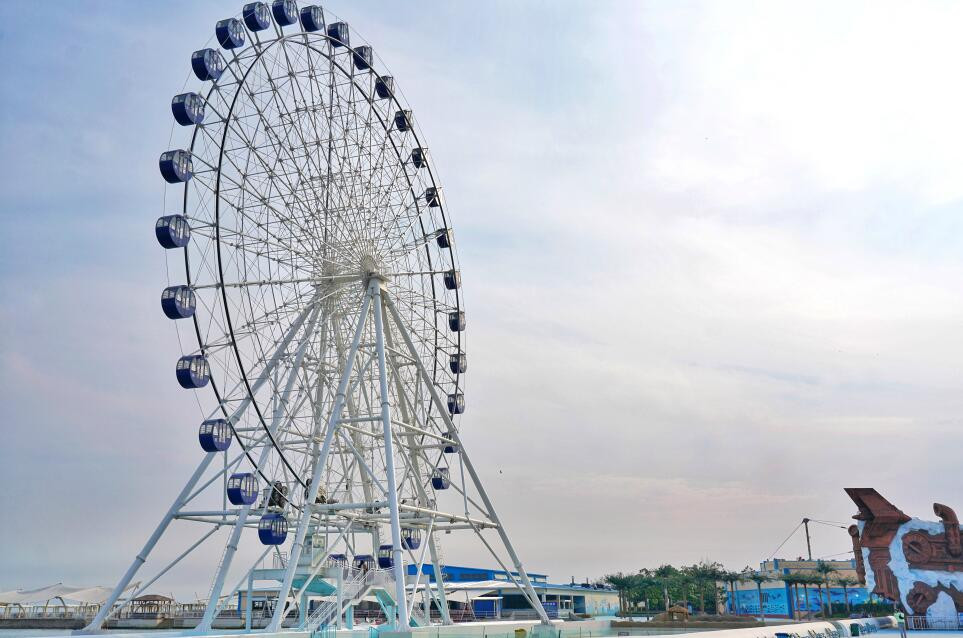 传说当摩天轮达到最高点时,如果与恋人亲吻,就会永远一直走下去。最为浪漫的地方,当仰望摩天轮的时候,就是在仰望幸福,幸福有多高,摩天轮就有多高。更别坐在海上的摩天轮里,等待它慢慢升高,直到最顶端,俯视所看到的一切,整个乐岛海洋王国,尽收眼底,海天一色。你会发现所要的幸福很简单。