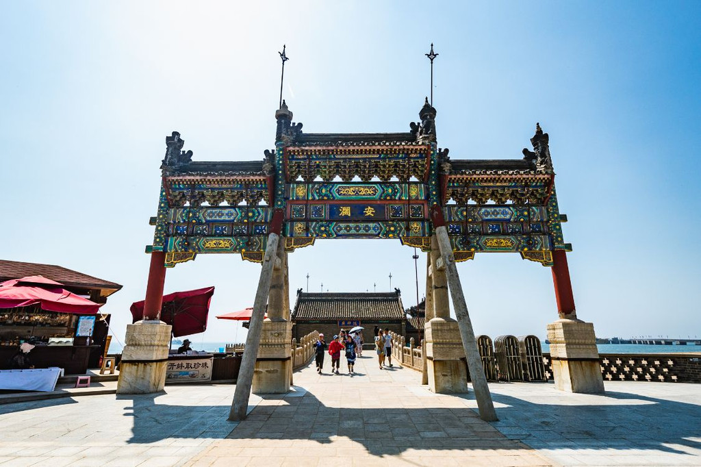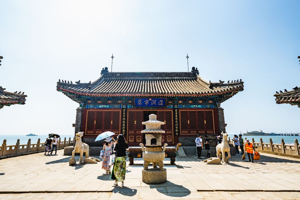 此处也是万里长城唯一集山、海、关、城于一体的海陆军事防御体系。在600余年的变迁中,老龙头书写了一部历尽沧桑的历史。老龙头景区总占地面积700亩,由入海石城、海神庙、靖卤台、南海口、澄海楼、宁海城和滨海长 城七部分组成。而海神庙则是出海人对幸福平安的祈盼,此处可远眺大海,除了祈福外,大殿后面的亭子也可供人休息,静听涛声。