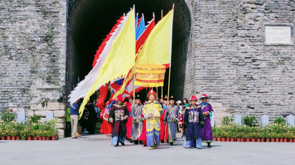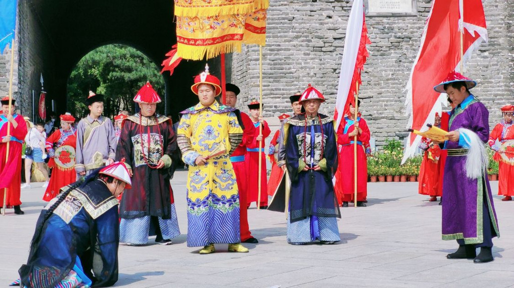 百年穿越来相会,大典迎宾共古今。这场演出迎接着游客走进景区,融入演员周边,仿似自己也穿越回到了明清时期。