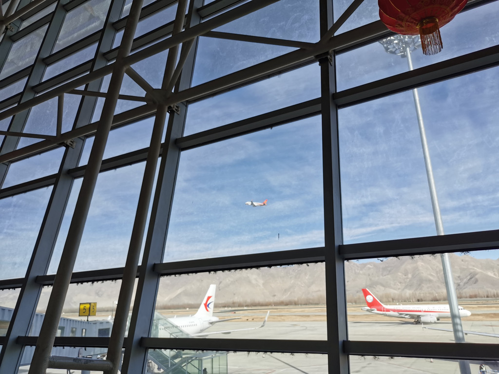 拉萨机场的安检很严格,全部要脱鞋检查。