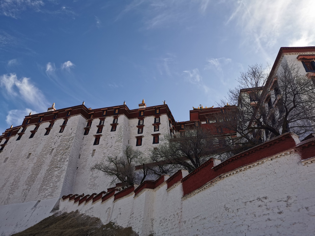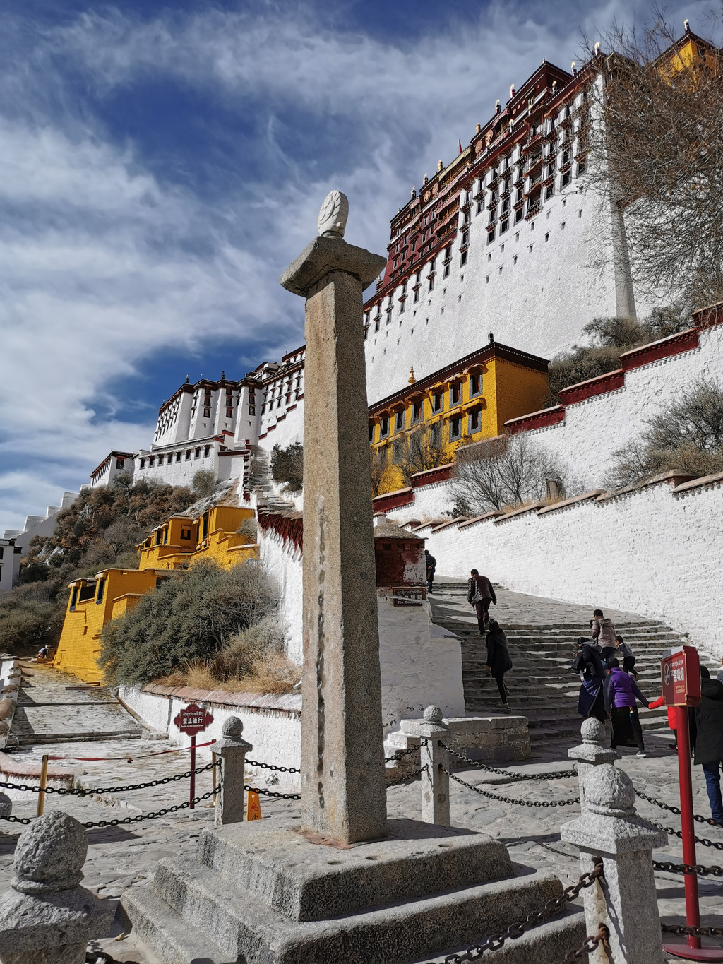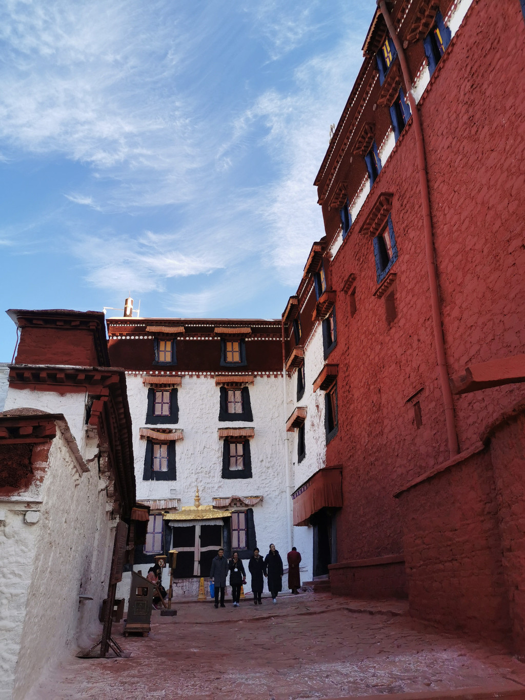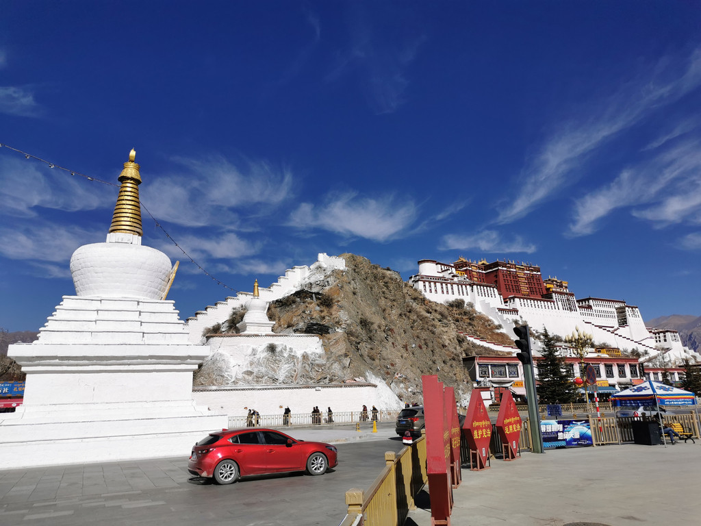 休息一个小时后外出游览。酒店楼下康昂多南路的对面就是布达拉宫广场,作为第一站。按照许多攻略中说的动作要慢、幅度要小,400米路程走了10分钟。先过安检。在西藏需要安检的地方很多,进出机场、车站、景区等公共场所,都要人脸识别、验证身份。所以身份证要随身携带。