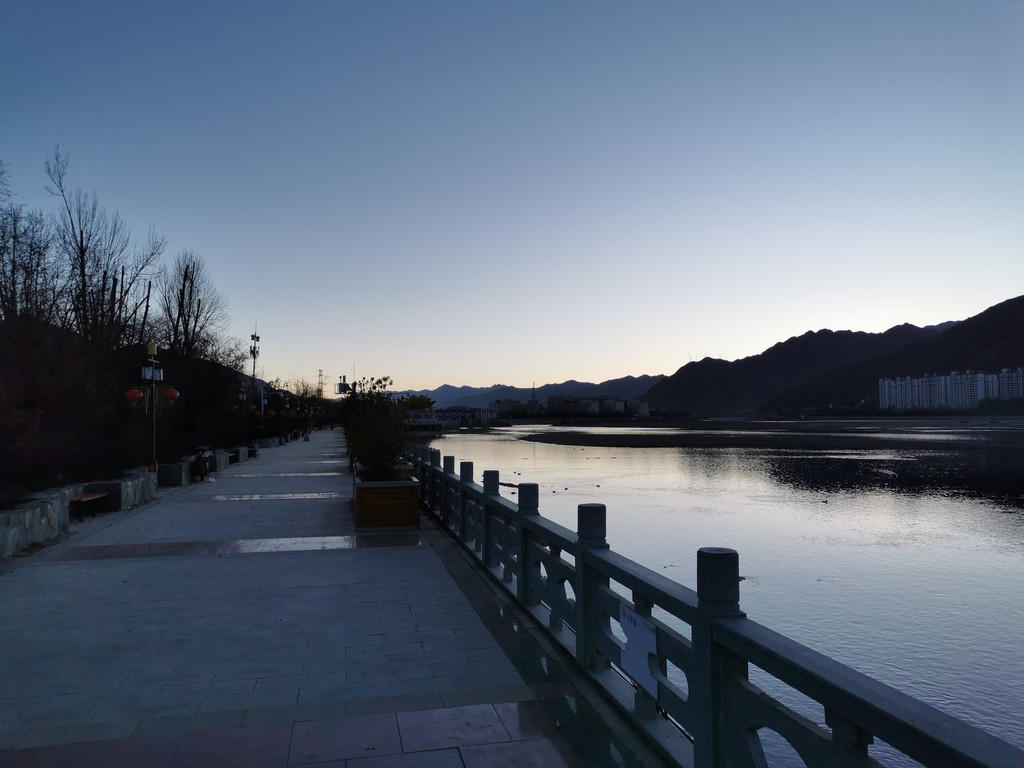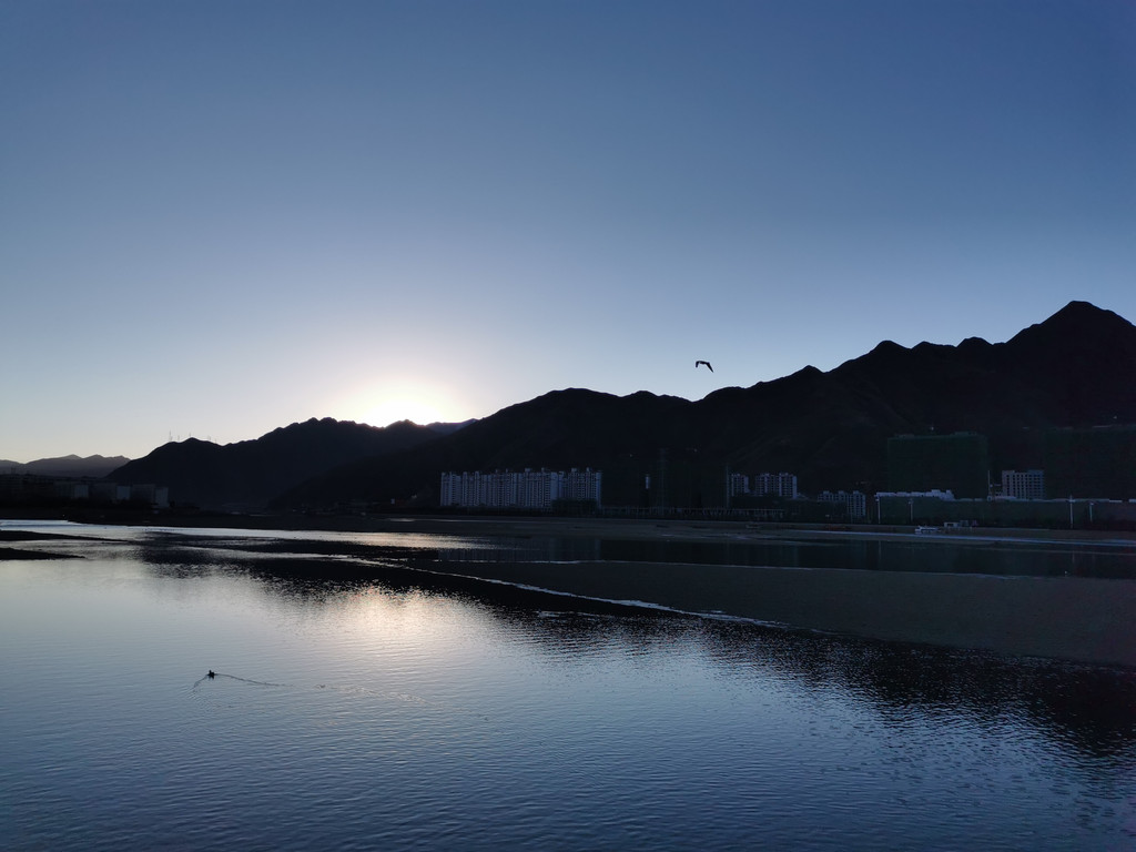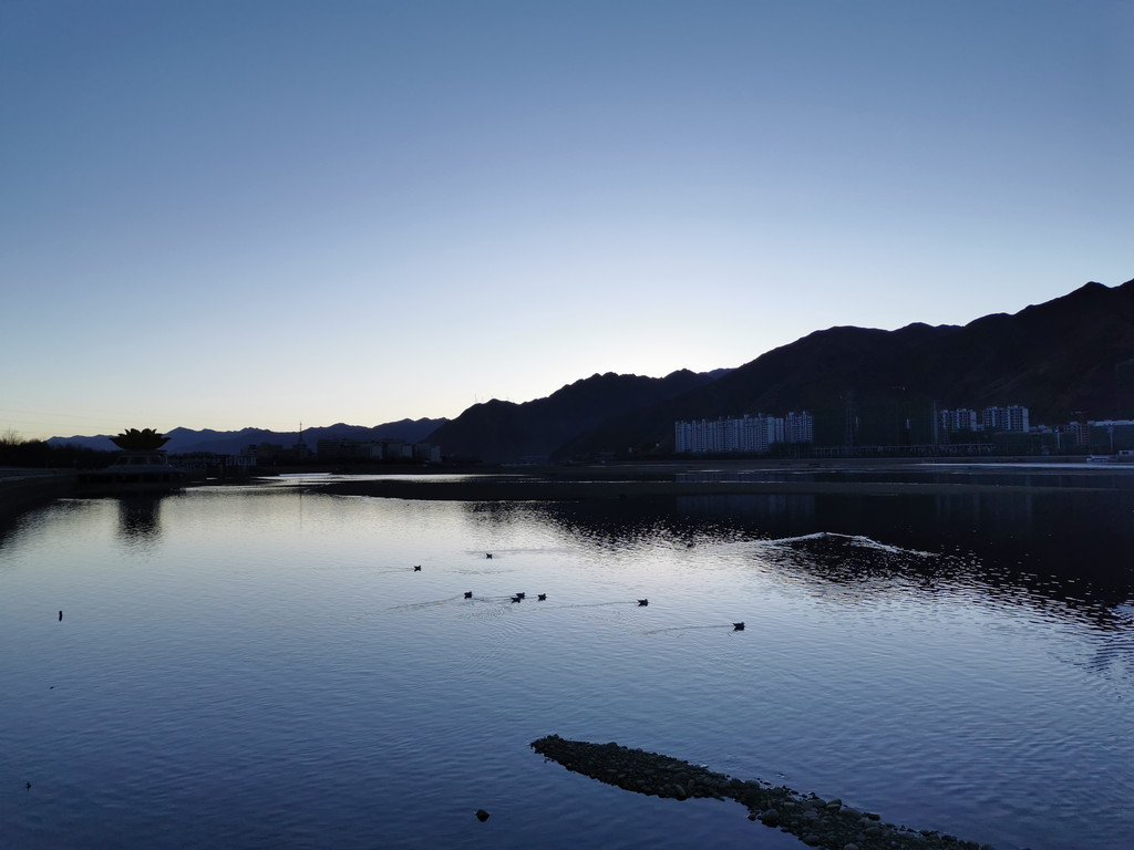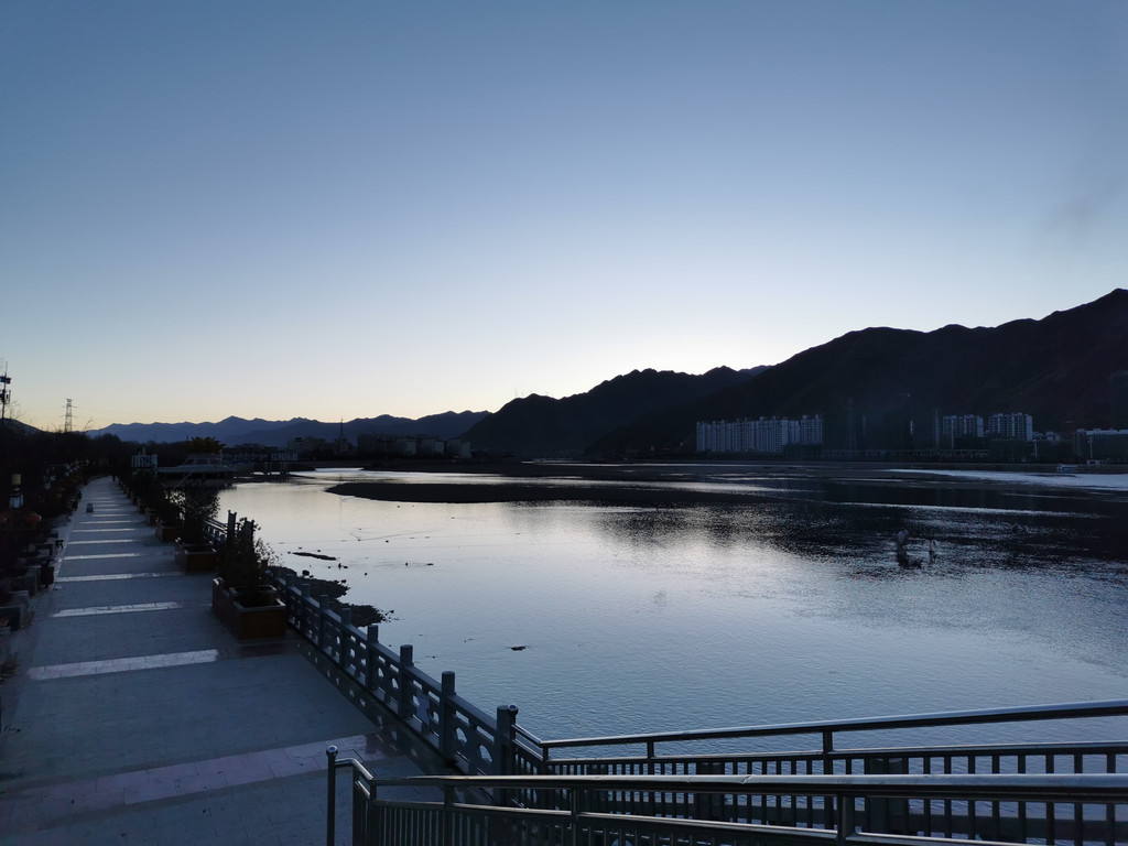 拉萨冬天日出时间较晚,预报今天8:36日出。拉萨河后面有山挡着,估计9点太阳才会露脸。