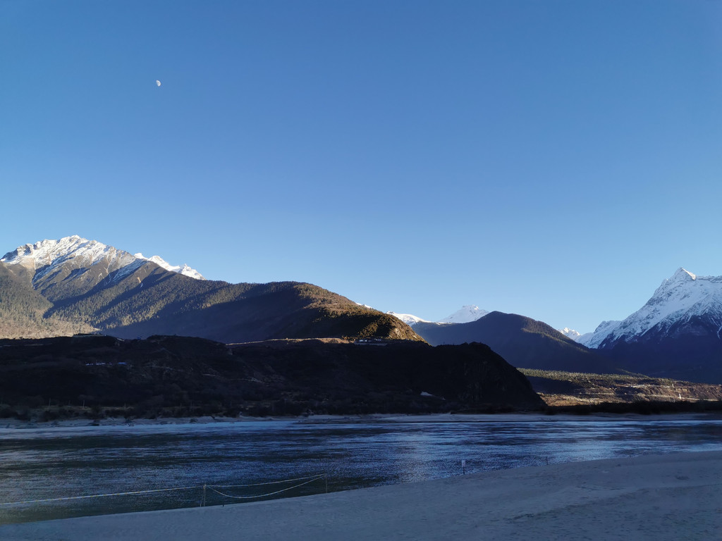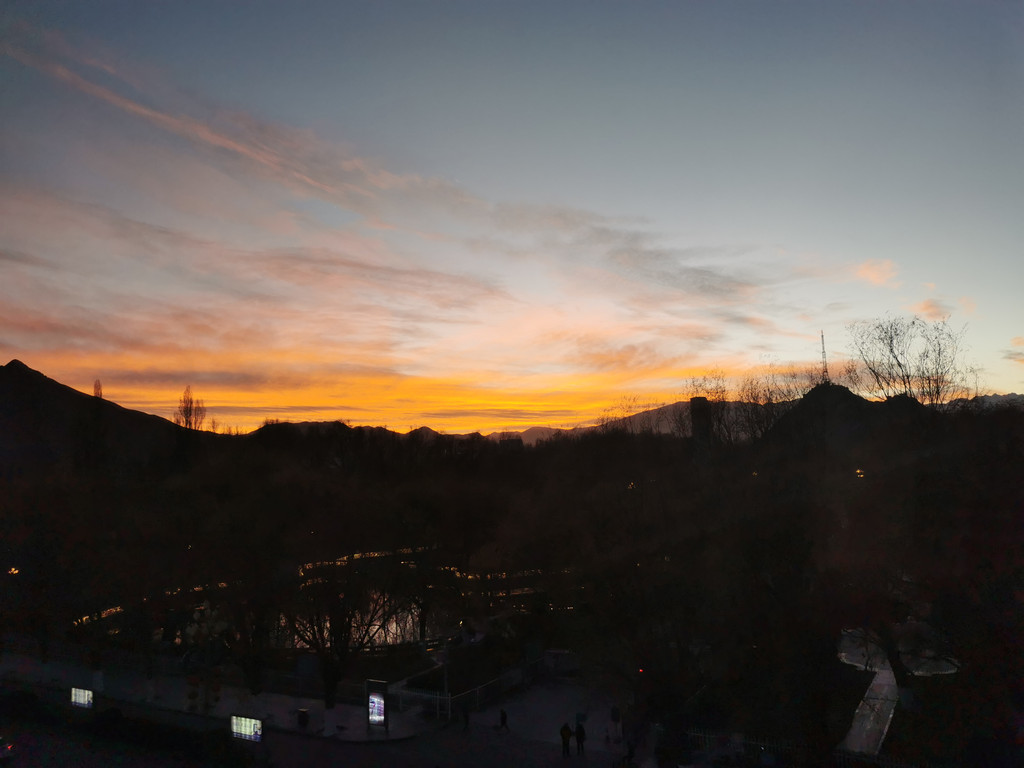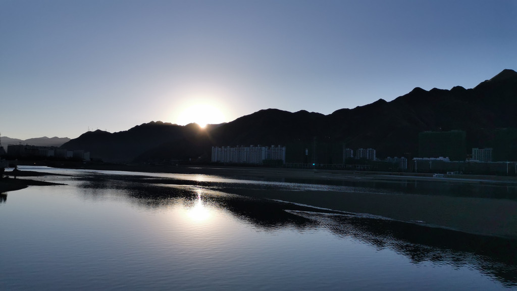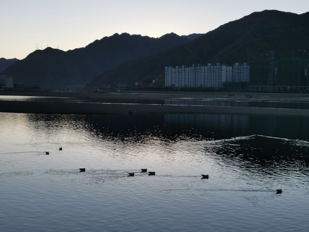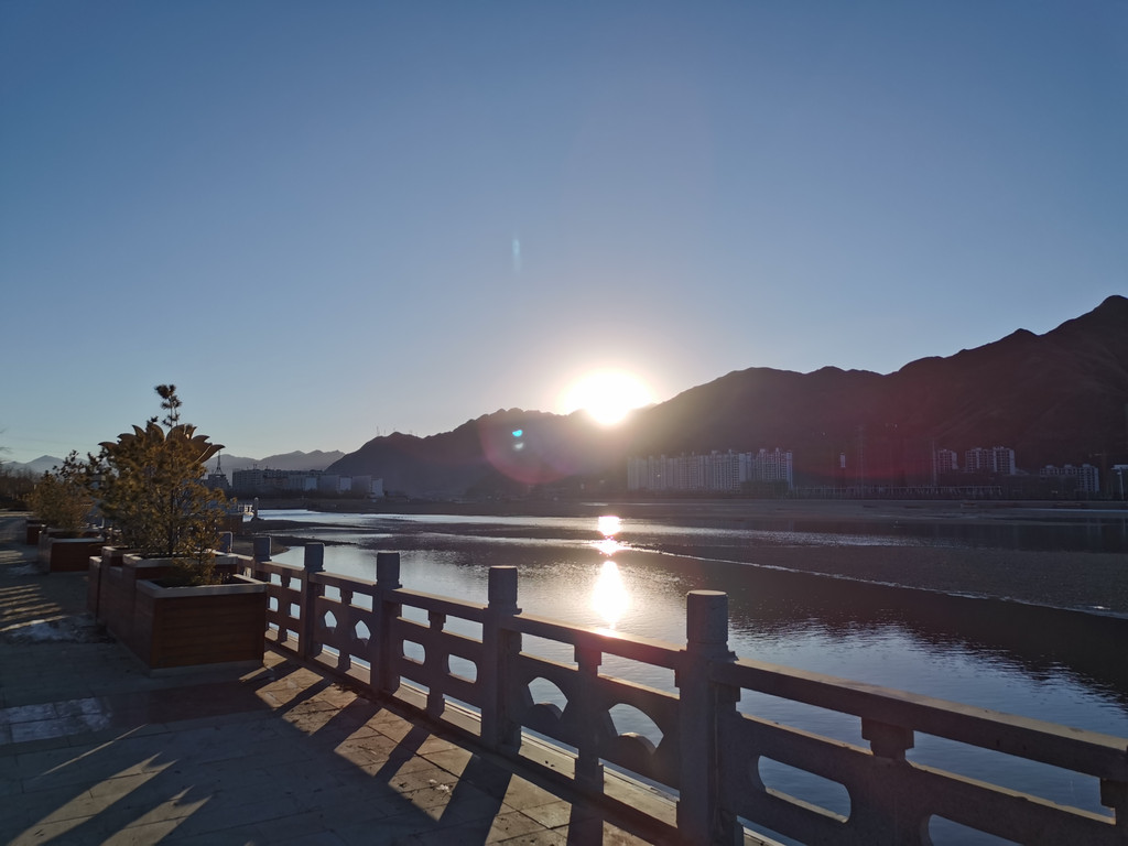 拉萨冬天日出时间较晚,预报今天8:36日出。拉萨河后面有山挡着,估计9点太阳才会露脸。