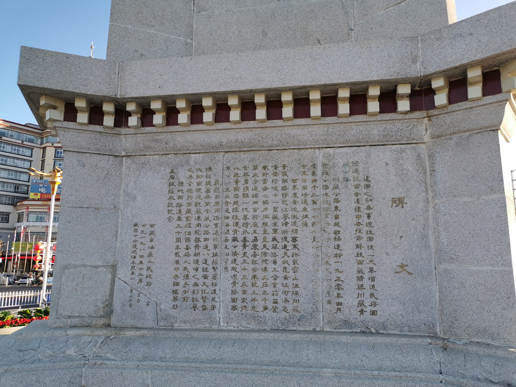 值此两路通车三十周年,感激中央,缅怀英烈,立石拉萨,永志纪念。