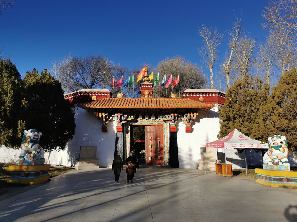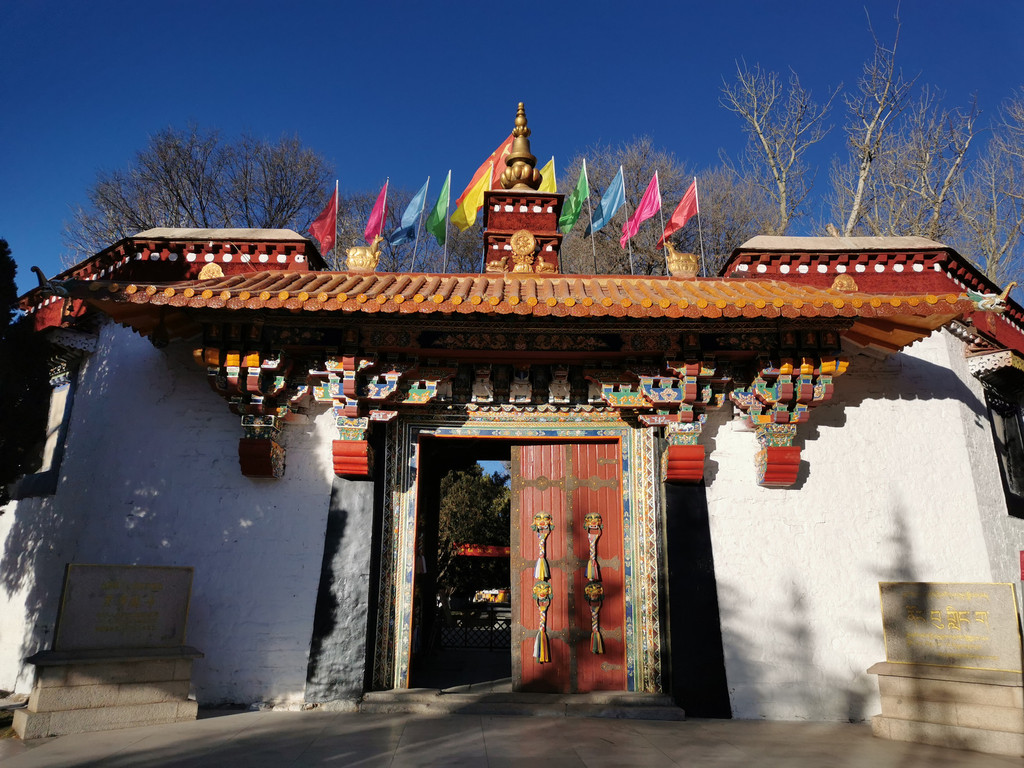 东部的宫殿金顶石墙,庄严肃穆;西部的森林区古树参天,曲径通幽。殿阁楼台、假山亭院、树木花草、水池勾栏,好一座藏汉合璧的避暑胜地。