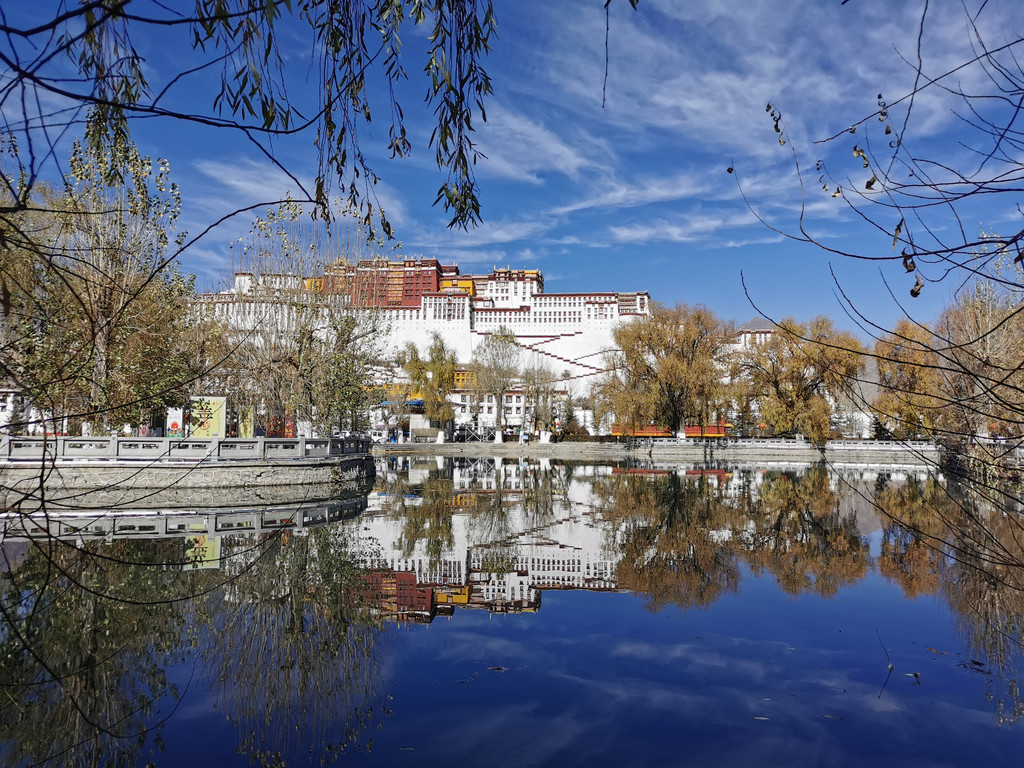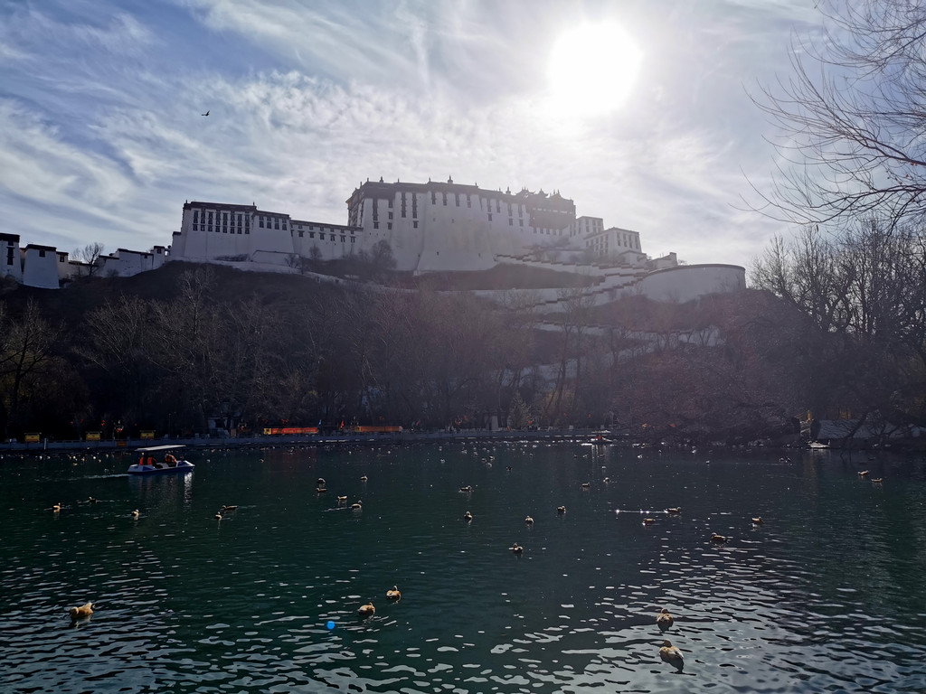 阳光强烈,水面浮动,布达拉宫背面的倒影拍不出效果。