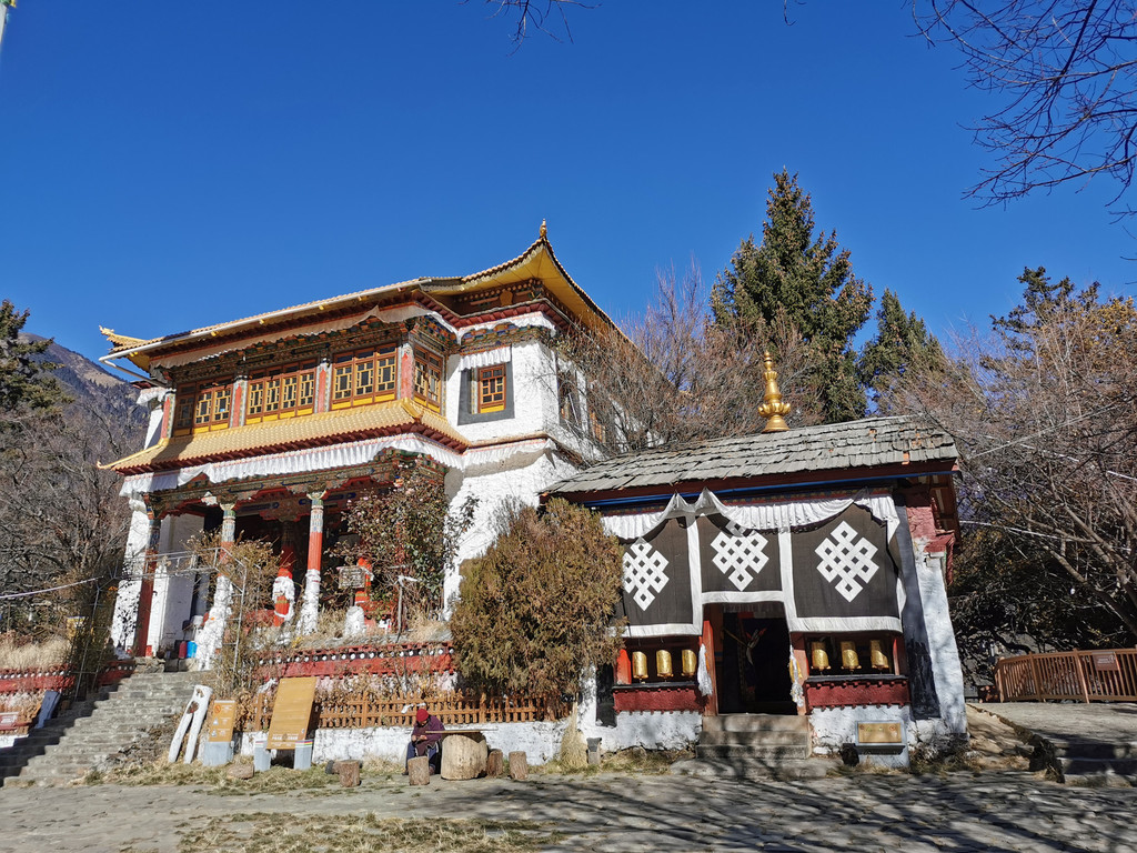 历史悠远的宁玛派红教错宗寺,始建于14世纪中叶,由宁玛派名僧桑杰林巴主持兴建,采用传统的石木结构,殿堂、佛塔、僧舍等建筑约2000平方米。历经风雨,几经兴衰,目前所见的建筑为1994年重新修建。