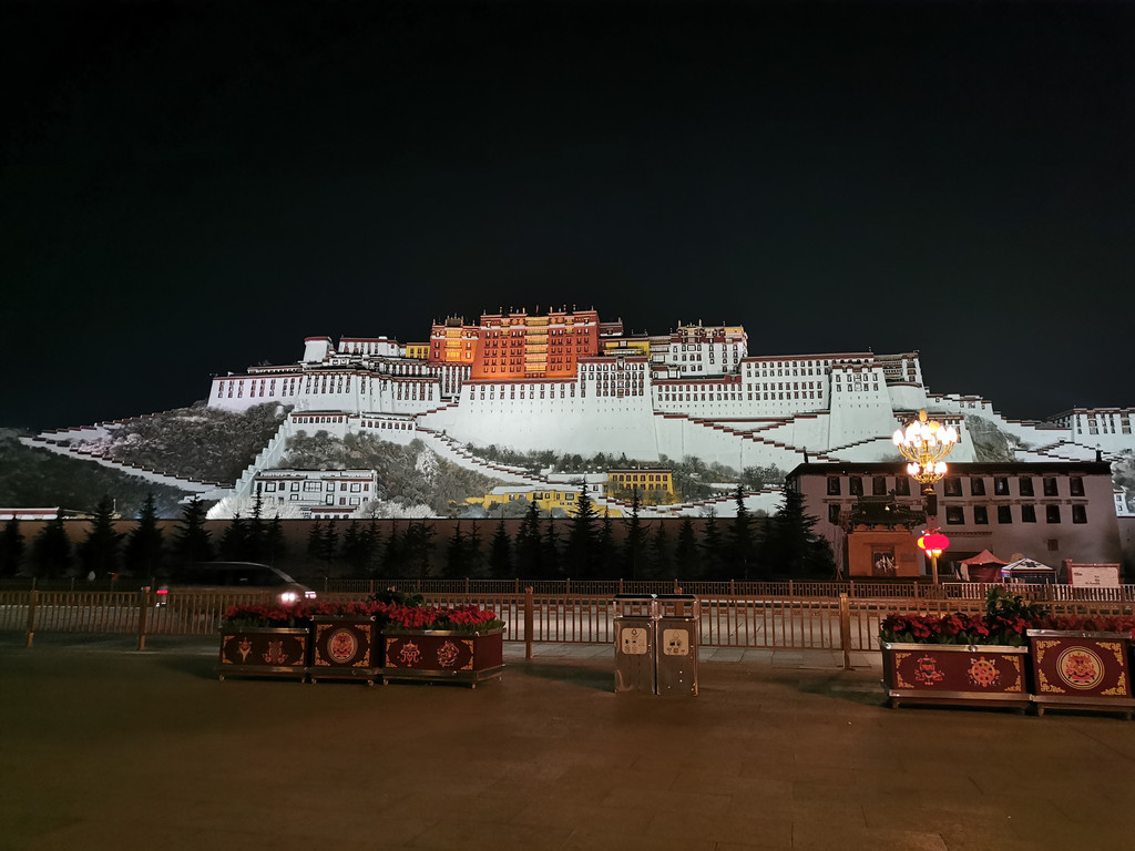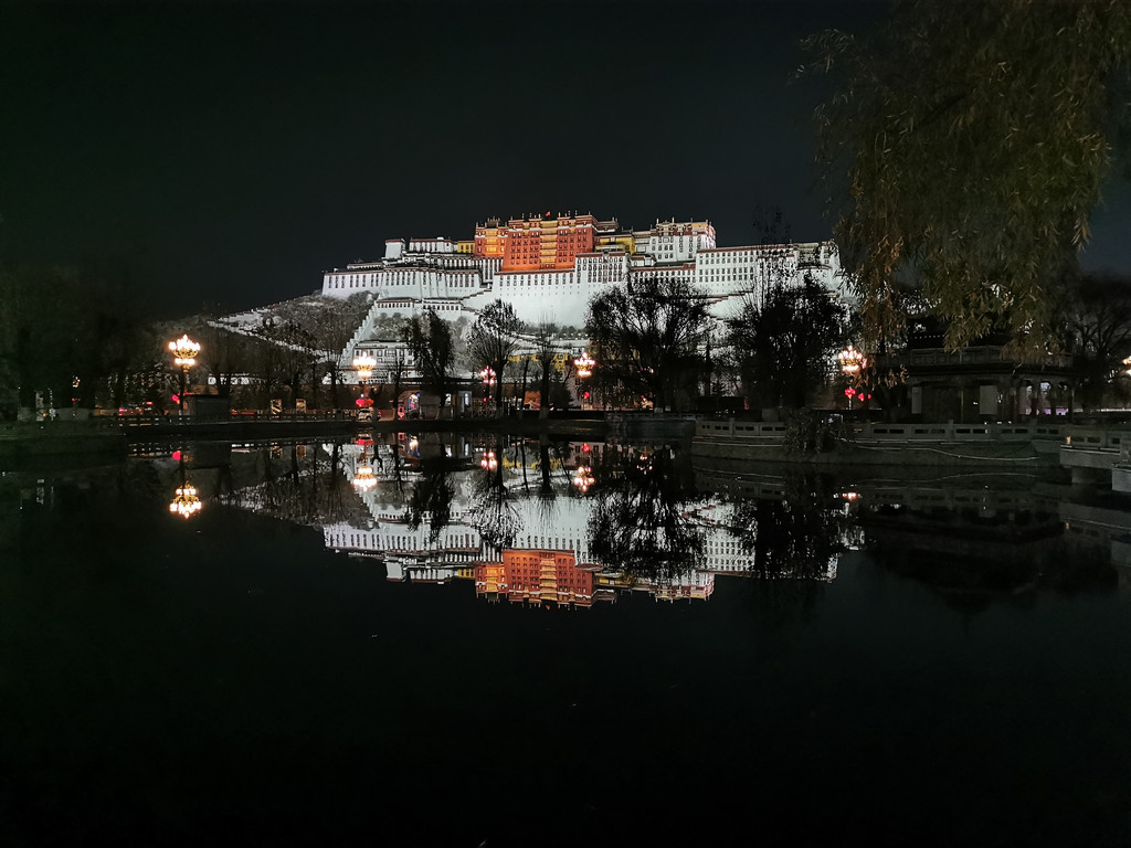 回到布达拉宫广场,人工湖中的夜景倒影,比白天多了几许魅力。