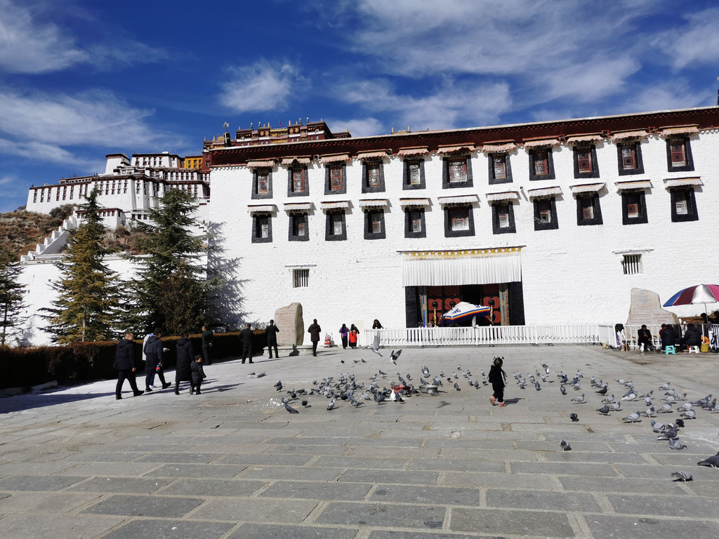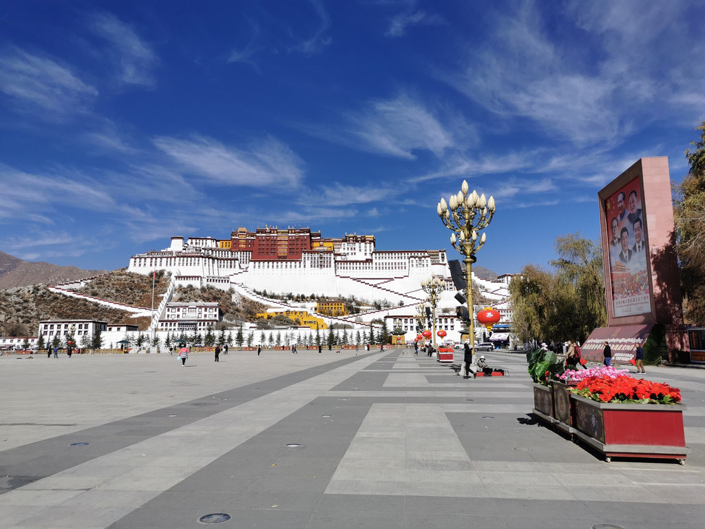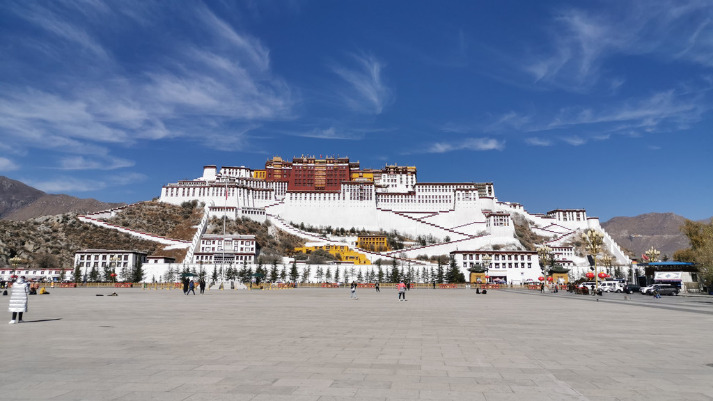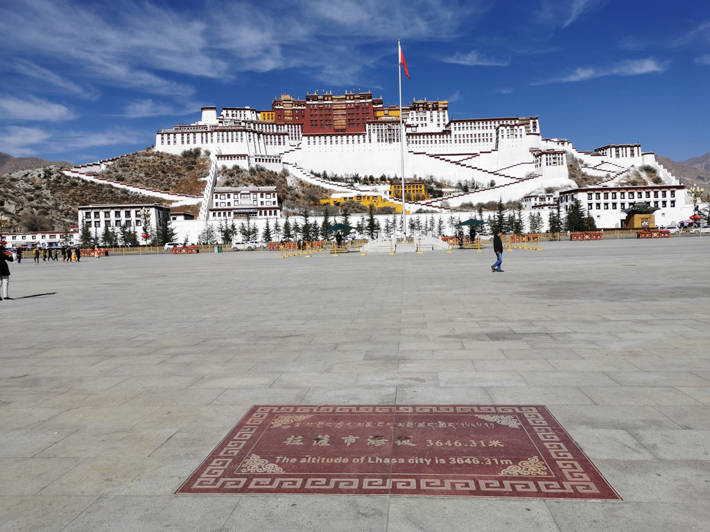 布达拉宫广场东西长600米、南北宽400米,总面积24万平方米,是世界上海拔最高的广场。什么概念呢,对比一下北京天门广场,南北长880米,东西宽500米,总面积44万平方米。
