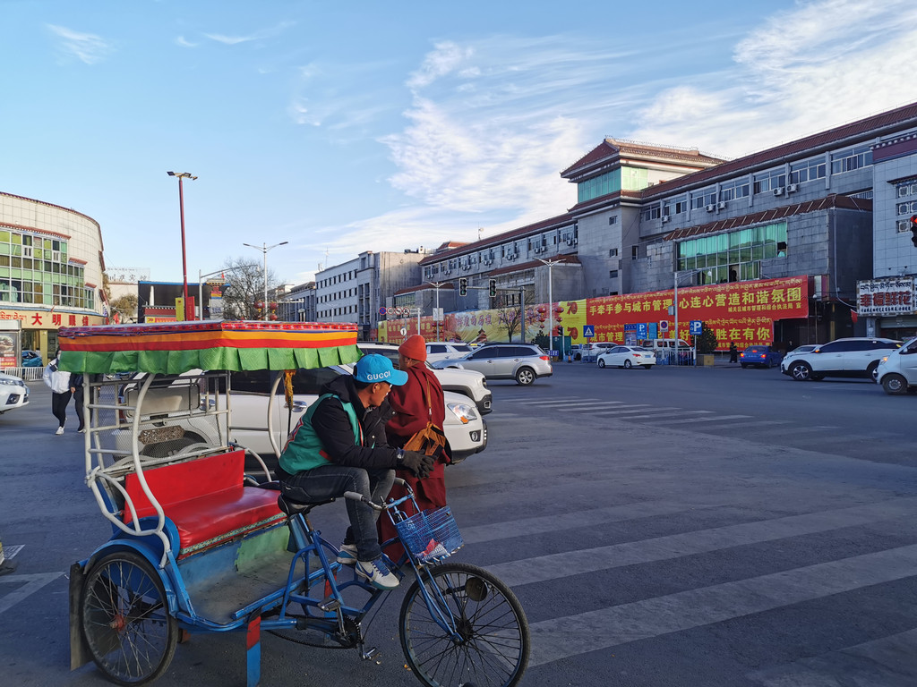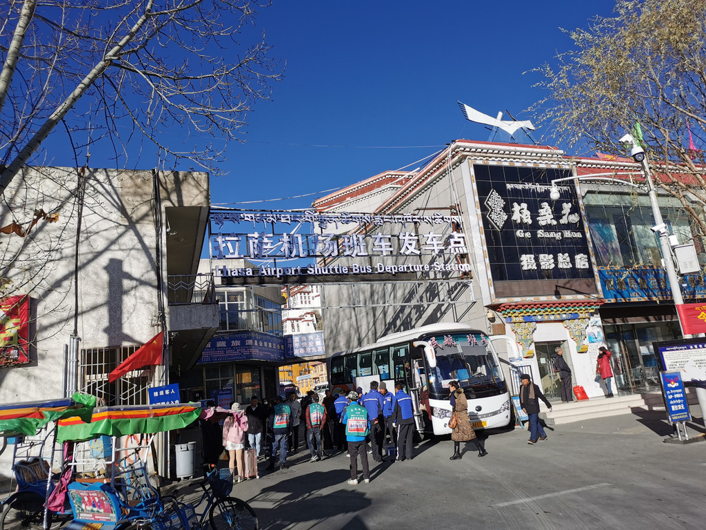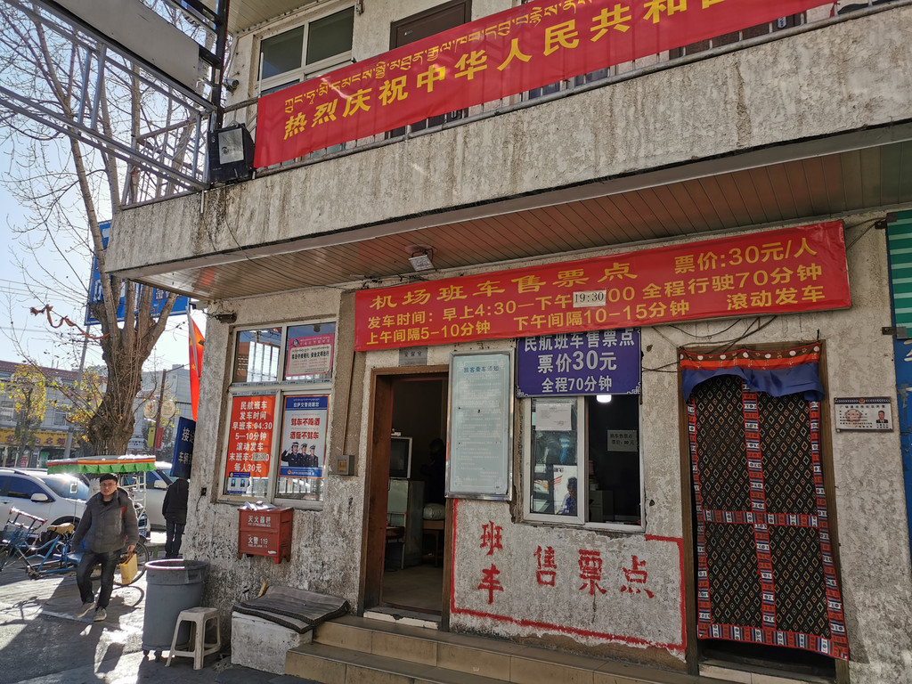 打车去民航班车乘车点。拉萨市区不大,出租车一般不打表,10块钱就够了。与内地不同的是,司机可以顺带其他客人。