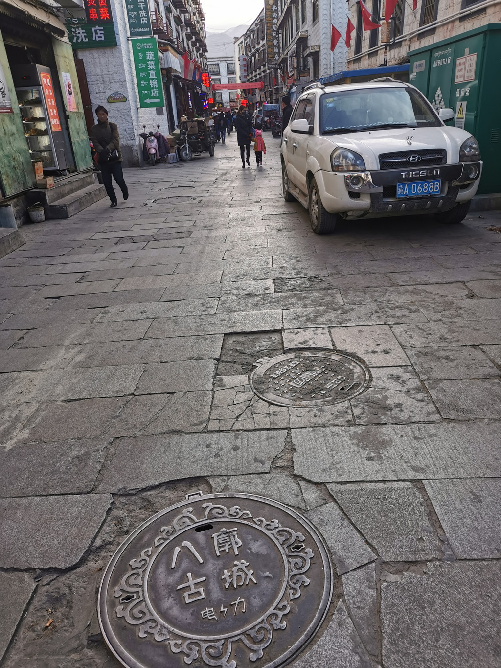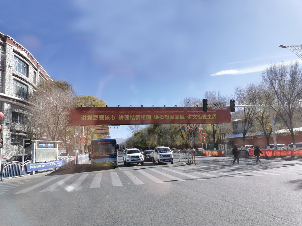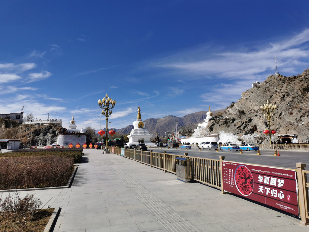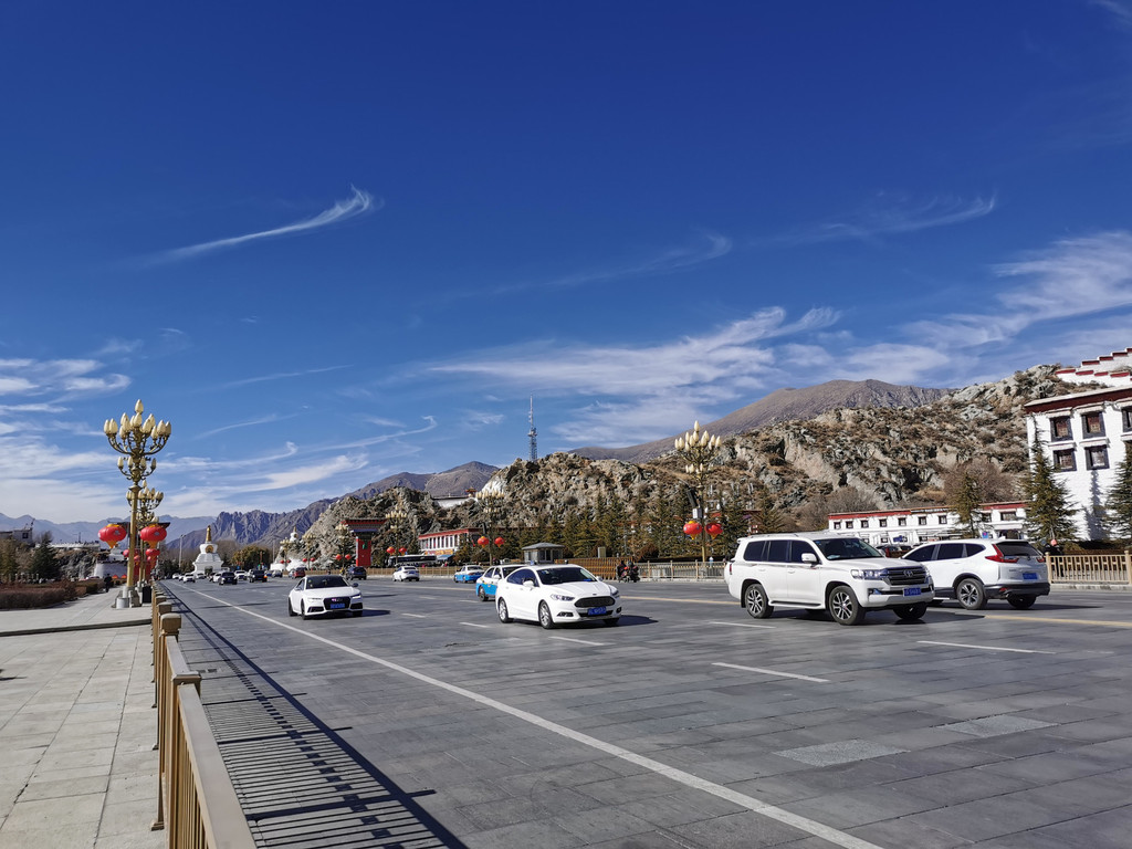 半个小时后离开广场前往布达拉宫参观。中间的这条路是北京中路,有点像天安门广场前的长安街,车辆可以通行,从广场到布宫要过地下通道。