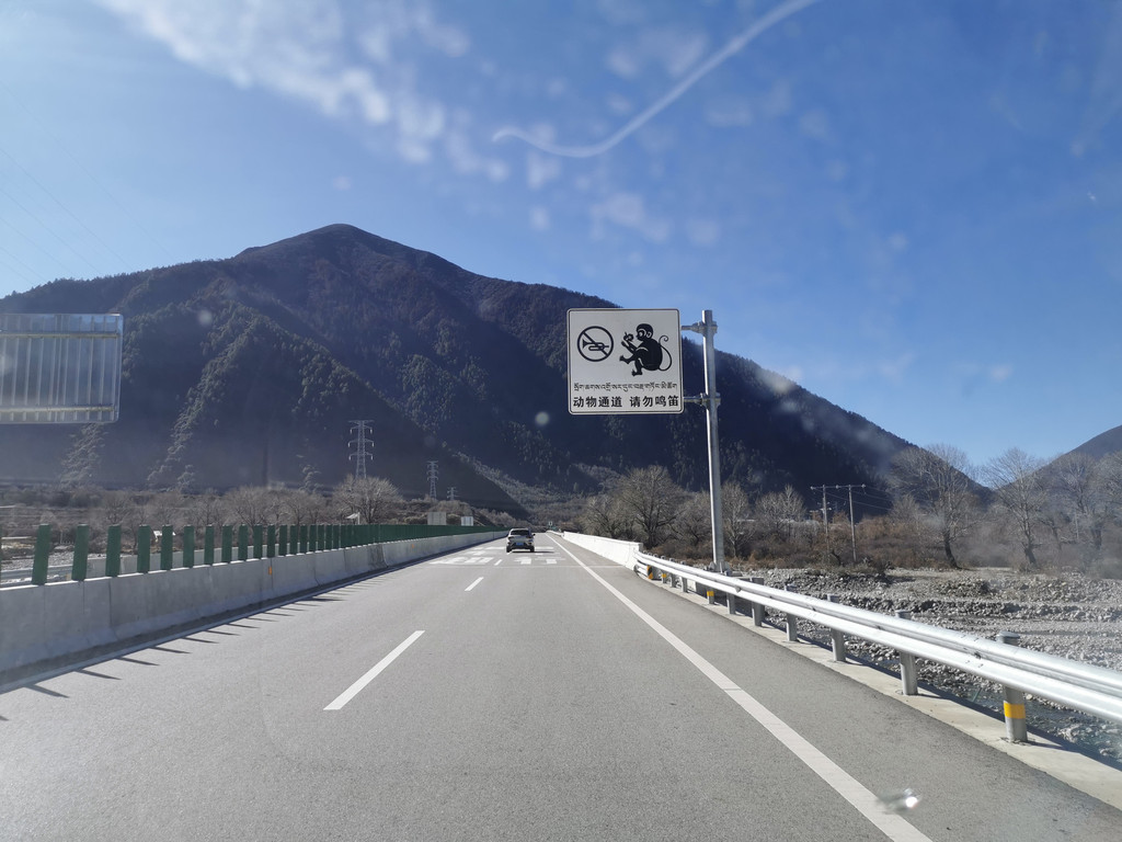 藏区对动物保护很重视。看,平原地区少有的“动物通道 请勿鸣笛”标牌。