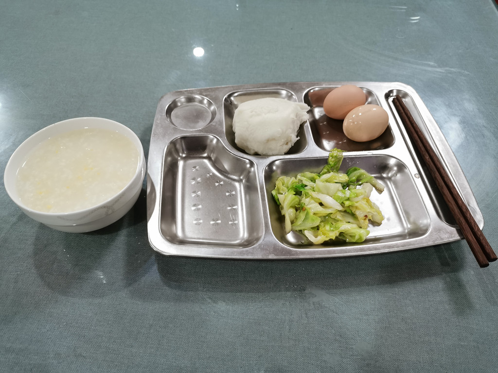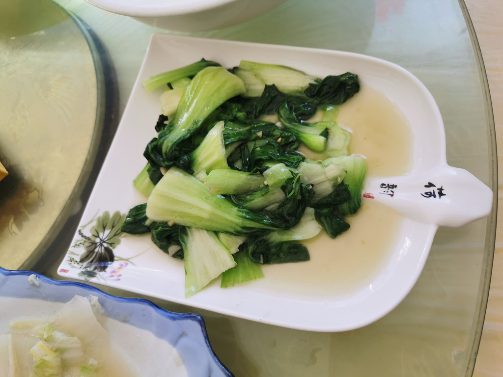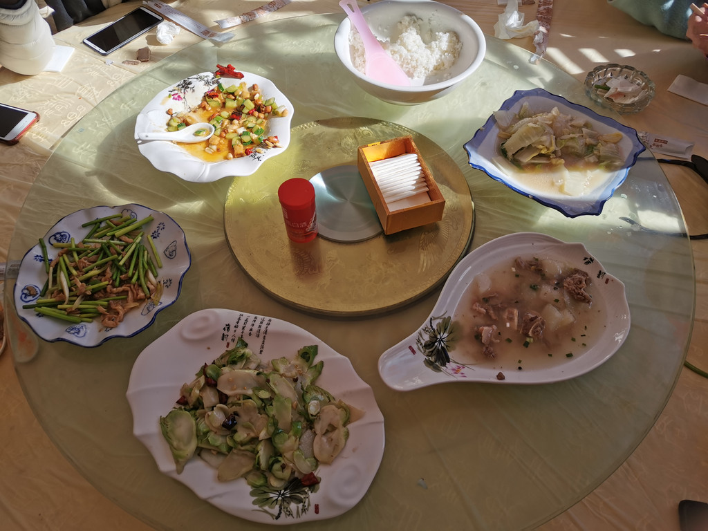 午餐依然是荤素搭配,难得的是,还有高原上宝贵的绿色蔬菜。