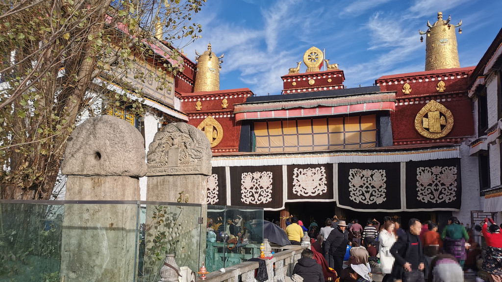 大昭寺是西藏现存吐蕃时期的建筑,也是西藏最早的土木结构建筑。拉萨有这样一句话“先有大昭寺,再有拉萨城”。寺庙最初的名字叫“惹萨”,后来演变成“拉萨”,成为这座城市的名字。这里最出名的,是里面供奉着文成公主从大唐长安带来的释迦牟尼12岁等身像,因此成为藏传佛教信徒朝圣的终点,很多朝拜者在寺庙门口磕长头,藏区群众的信仰力量窥一斑而见全貌。