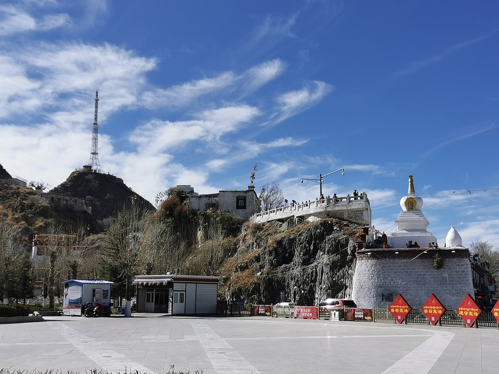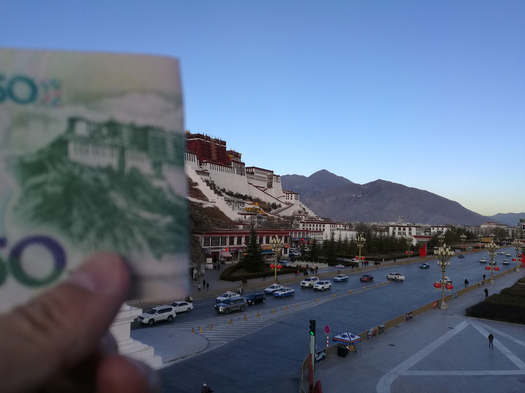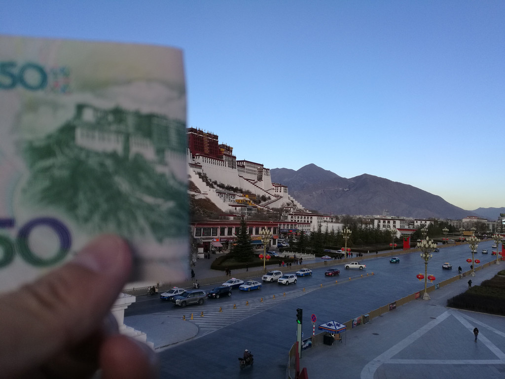发射塔下面是药王山,实地观看50元人民币背面布达拉宫图案的最佳角度,待会儿来参观。