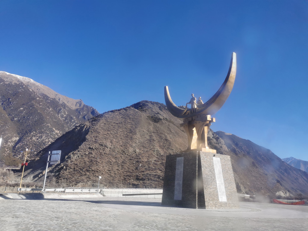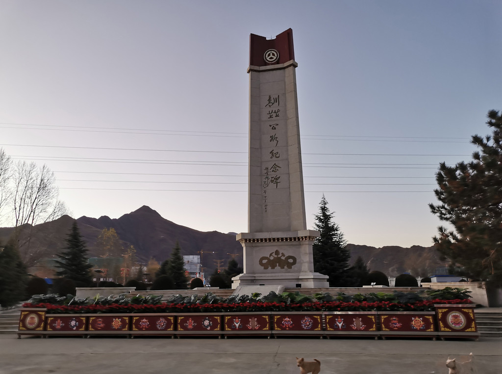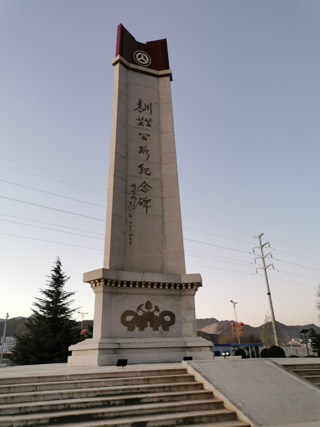 青藏川藏公路纪念碑位于拉萨河畔。1984年12月25日,为纪念青藏公路和川藏公路通车30周年,铭记中国人民解放军的光辉业绩和巨大牺牲而建,碑名由胡耀邦题写。2019年10月,入选第八批全国重点文物保护单位名单。