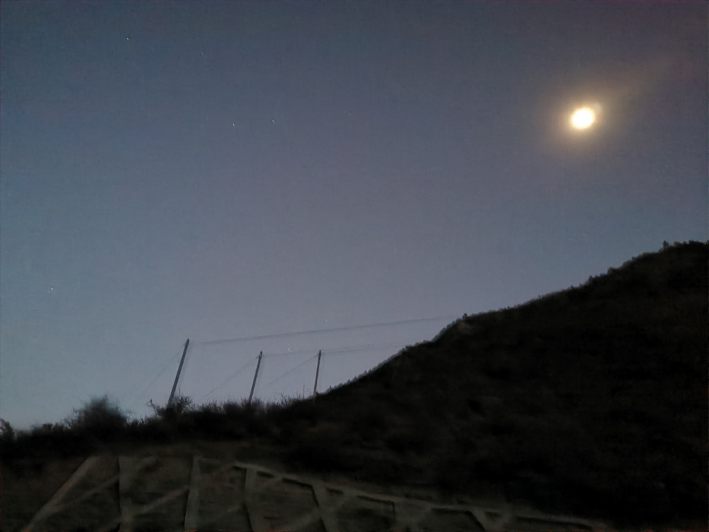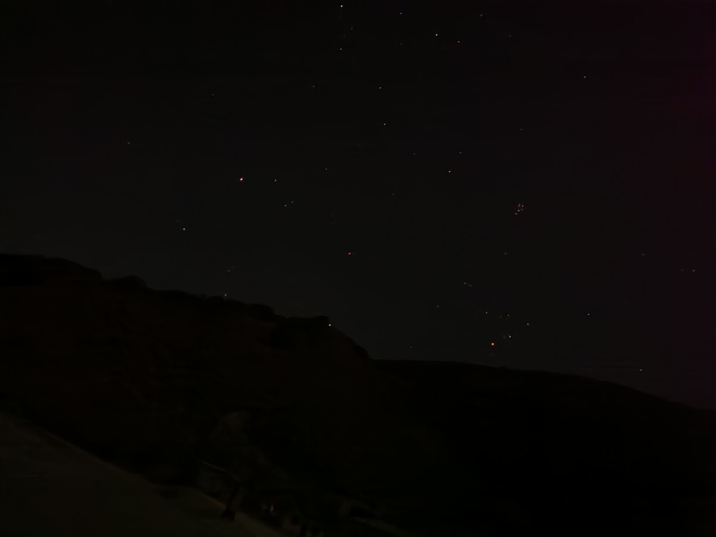 繁星满天,好久不见,尝试着用手机拍照。专业模式-流光快门-绚丽星轨。因为没有三脚架固定,最后的效果只能这样了。