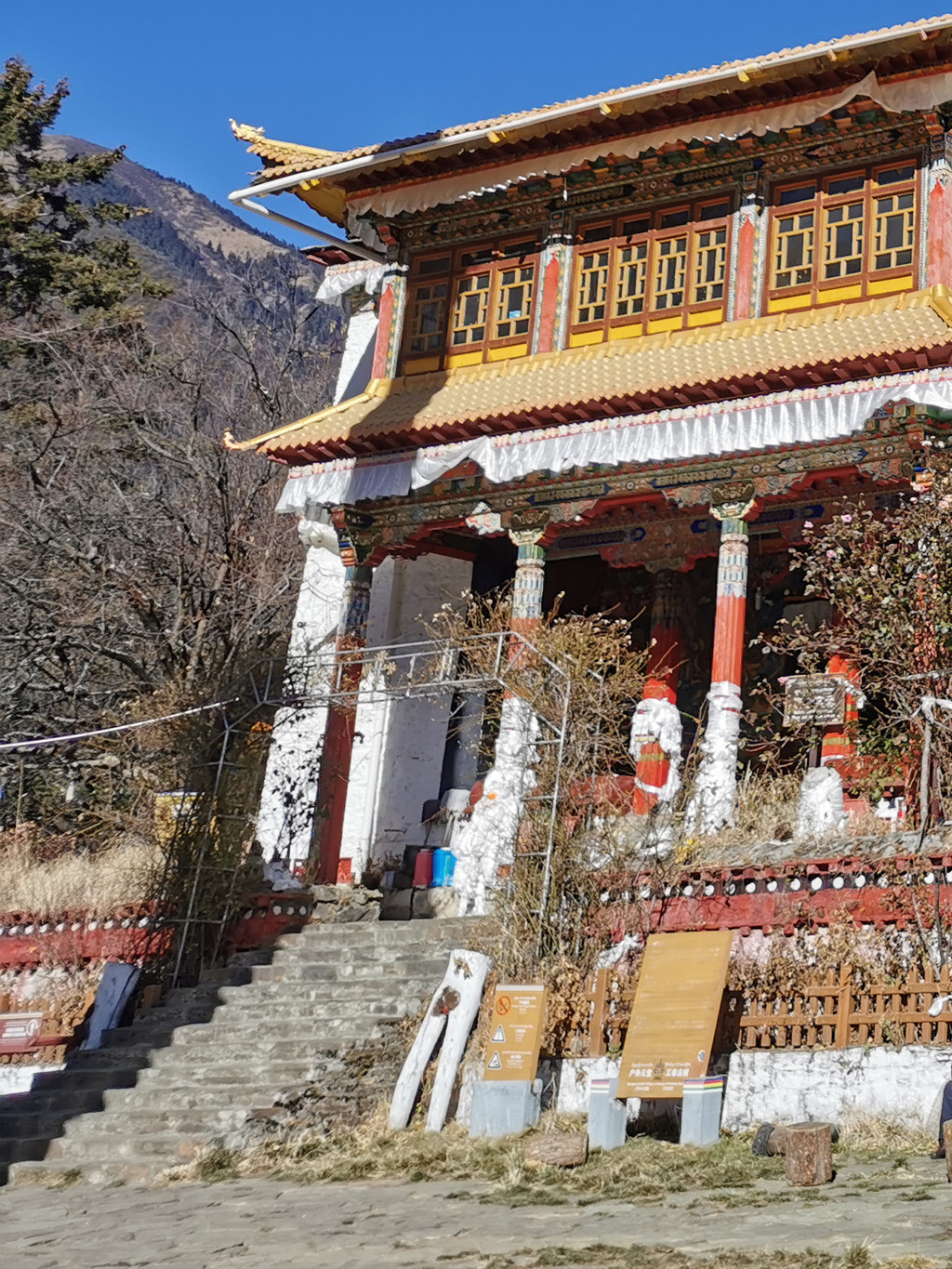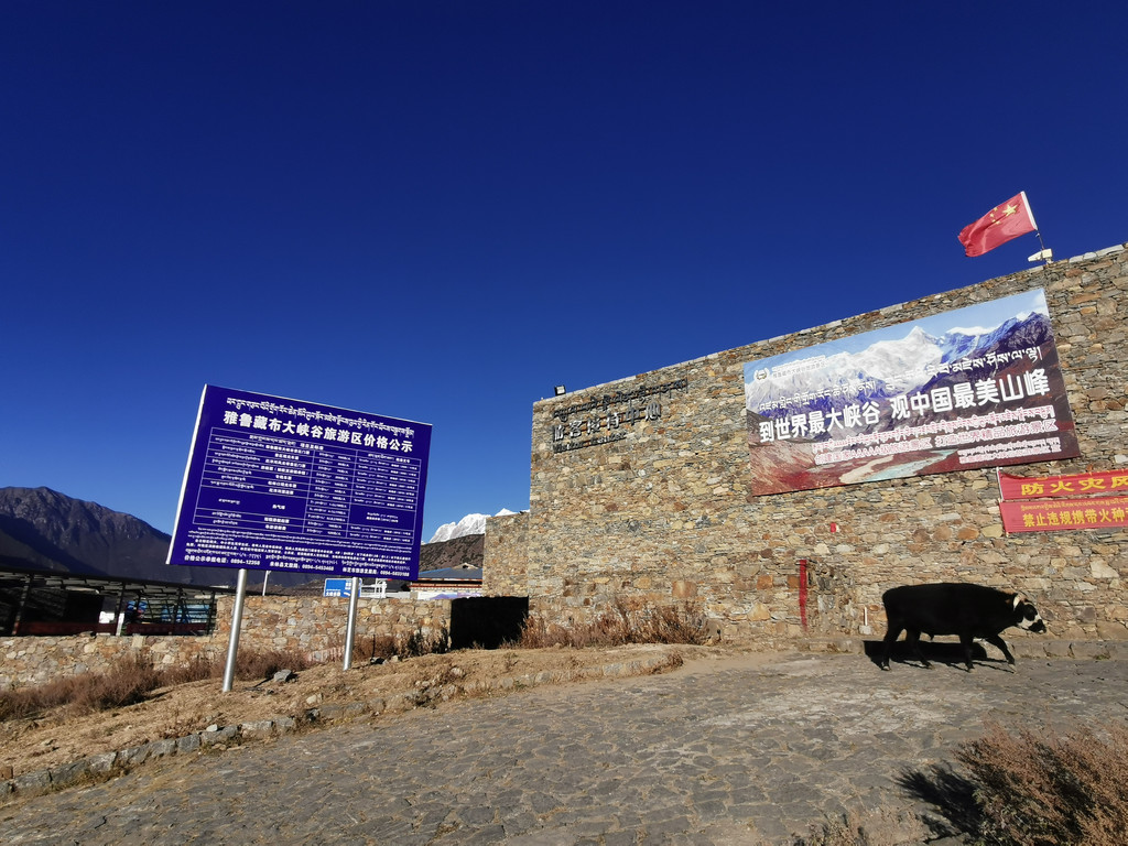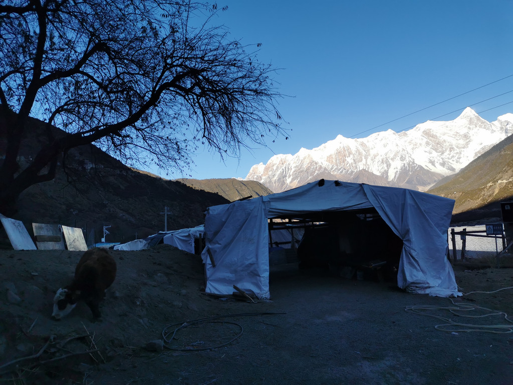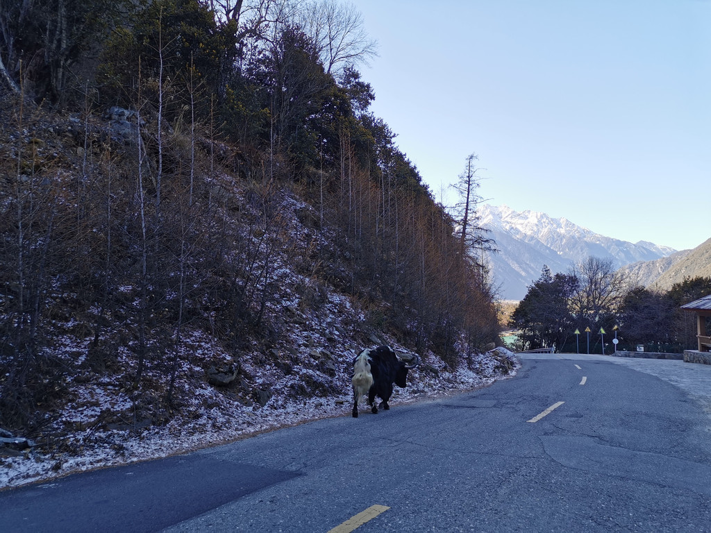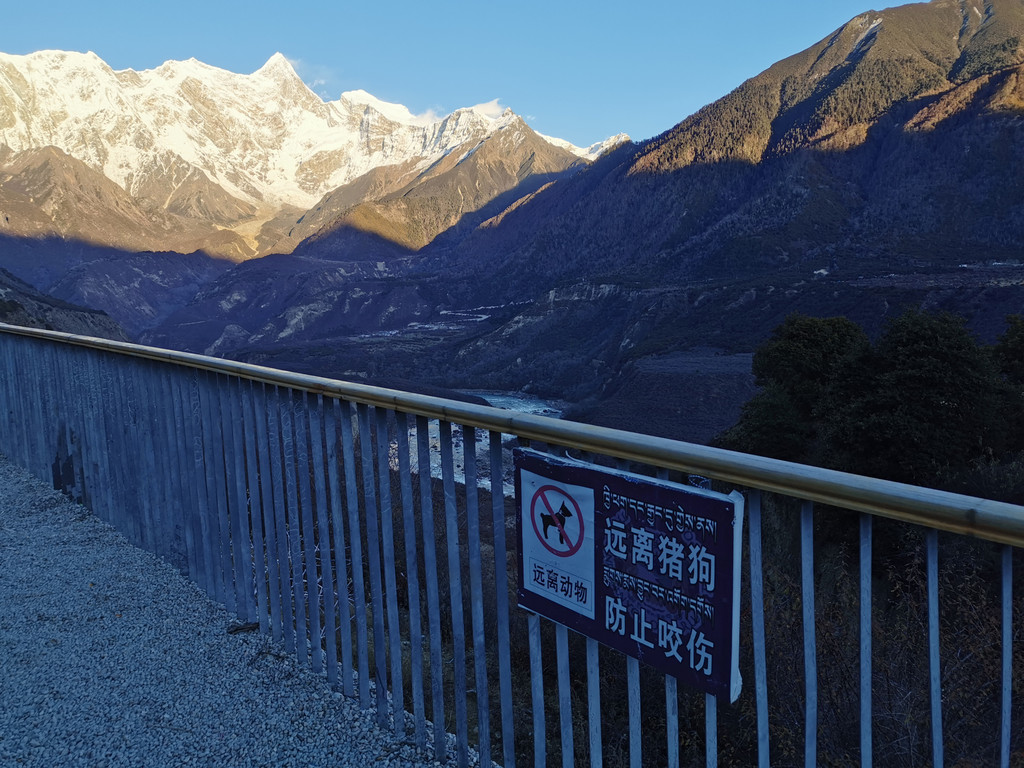 这里,笔者遭遇险情,被一只野狗穷追不舍。眼前立刻浮现出南迦巴瓦峰观景台“远离猪狗 防止咬伤”的提示,怎么办?跑,赶紧跑!