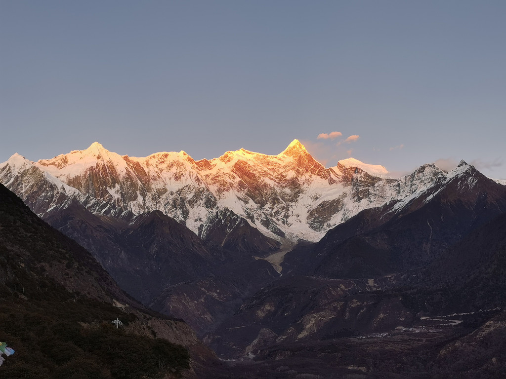 之后坐车去索松村,那里有一个观景台,是欣赏日照金山的最佳位置之一。