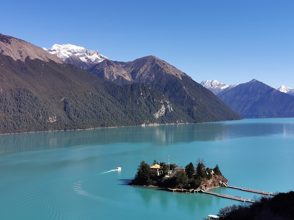 巴松措,藏语“绿色的水”的意思。地处工布江达县巴河镇巴河上游的高峡深谷中,海拔3380米,是红教的一处著名神湖和圣地。景区游览顺序是,从游客中心乘坐公交到达湖心岛,游览措宗寺,远观雪峰森林,还可乘船环湖游。