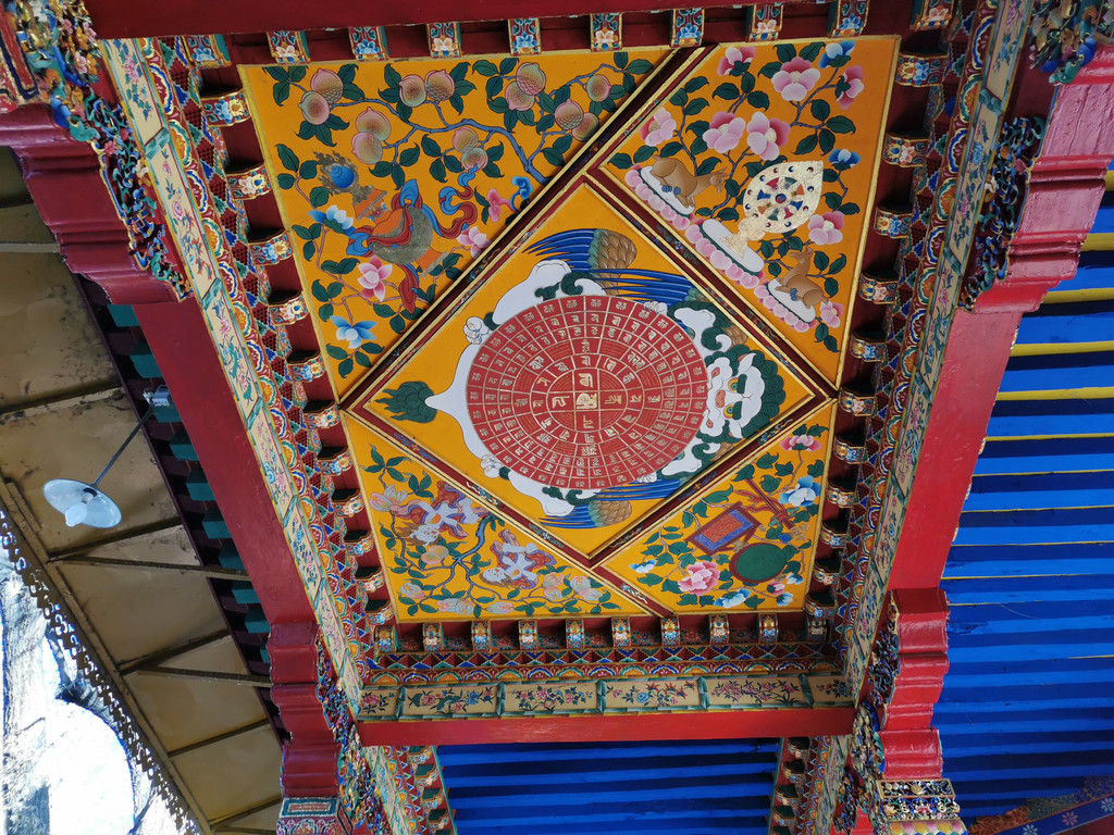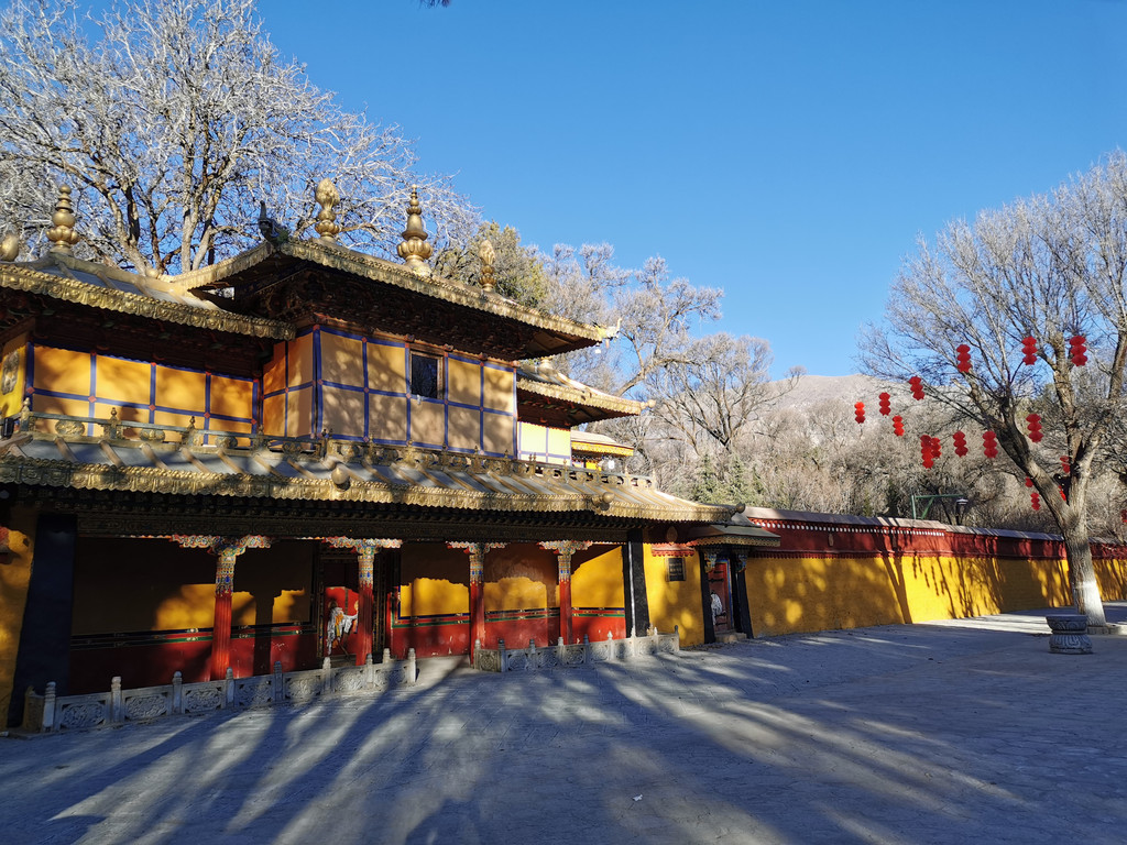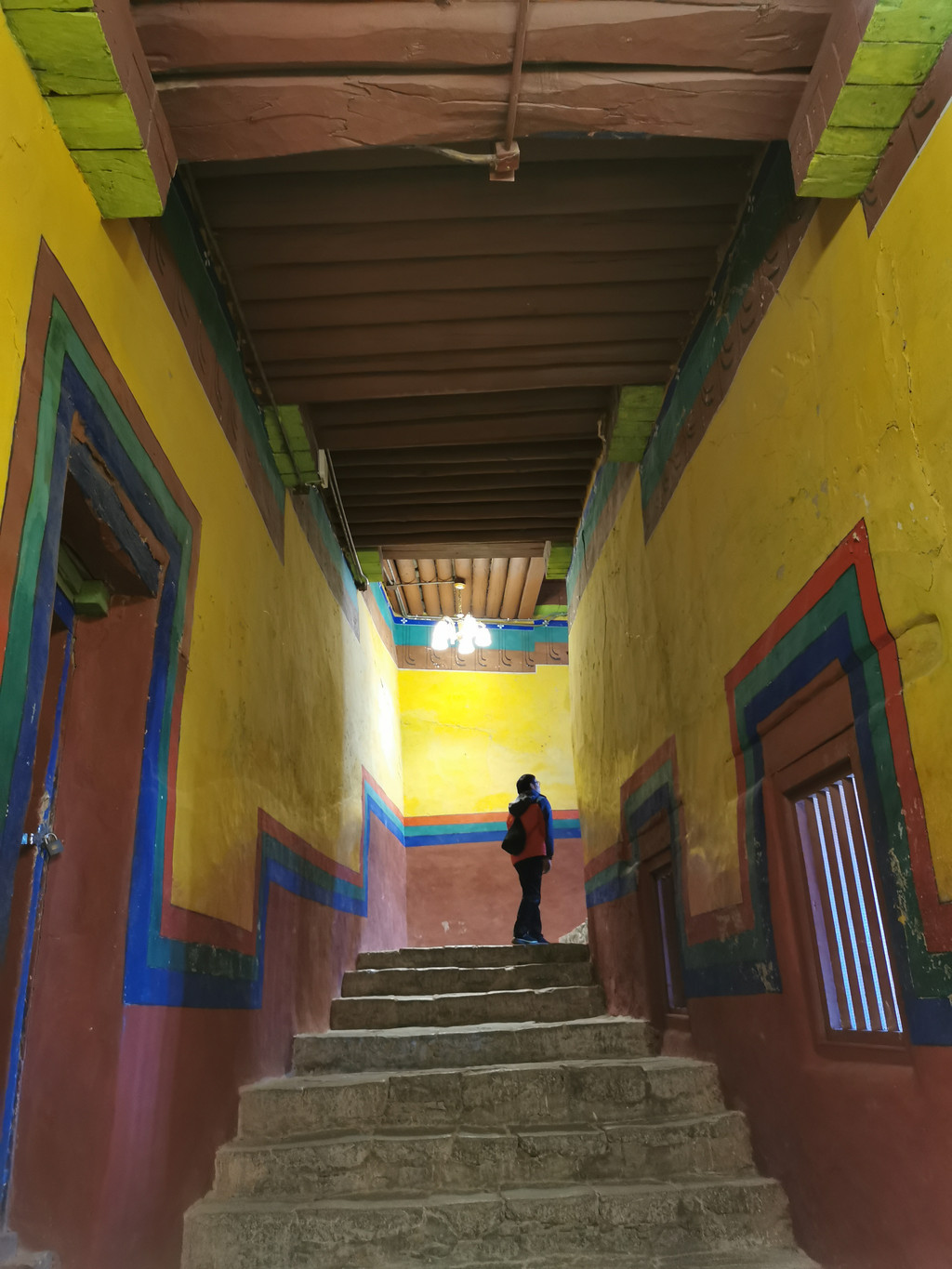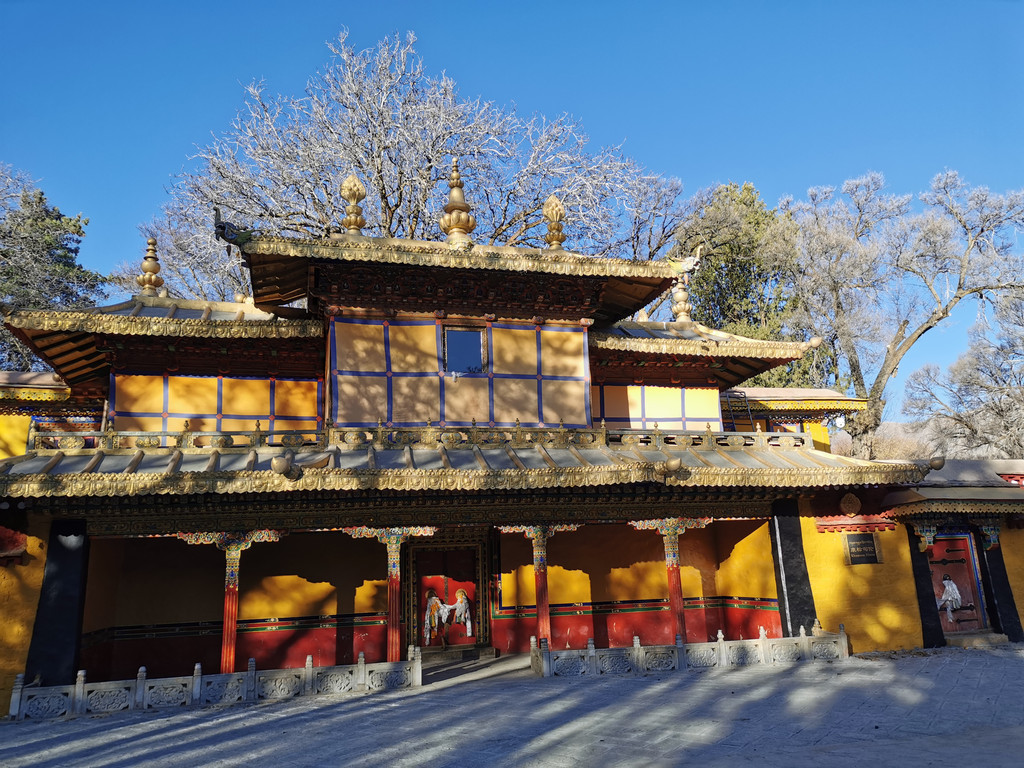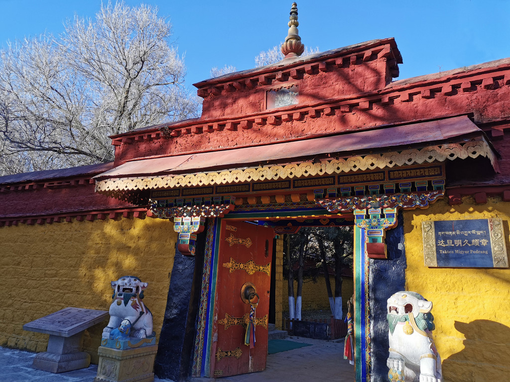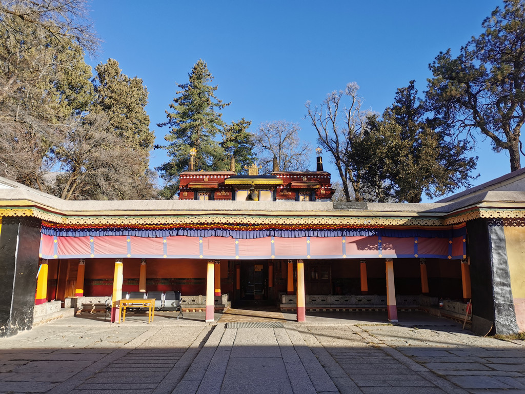 格桑颇章有三层,一层是经堂,前面是石板院子;二层有罗汉殿、护法殿和阅经室;三层是DaLai接见僧俗官员的地方。