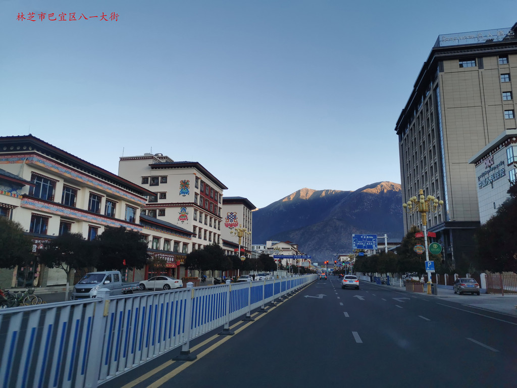 巴宜区八一镇,林芝市政府所在地,一座山水相依、干净美丽的小城。八一大街尤其漂亮,基础设施不亚于长三角地区的城镇。