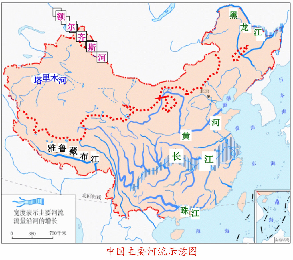 发源于西藏西南部喜马拉雅山北麓杰马央宗冰川的雅鲁藏布江,全长2057千米,是我国最长的高原河流,也是世界上海拔最高的大河之一。主要支流有拉萨河、年楚河、多雄藏布、尼洋河、帕隆藏布、达确藏布、杰马央宗曲、加帕藏布、郭昌曲、尼多曲,其中流域面积最大的五条支流是多雄藏布、年楚河、拉萨河、尼洋河和帕隆藏布。