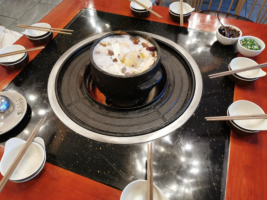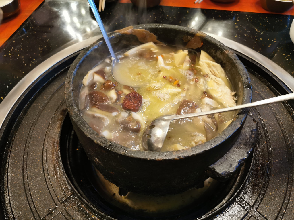 晚饭安排的是传颂已久的鲁海石锅鸡。重点是石锅,出身名门、工艺独特,采用墨脱县的天然皂石精心打磨。鸡汤,是散养的藏香鸡慢慢熬成。现在交通这么发达,这些说法令人存疑。当然鸡汤口感不错,经过一整天十几个小时的奔波,疲惫不堪、没有高反纠缠,只要是正常人,这时候看到啥都会垂涎三尺吧。