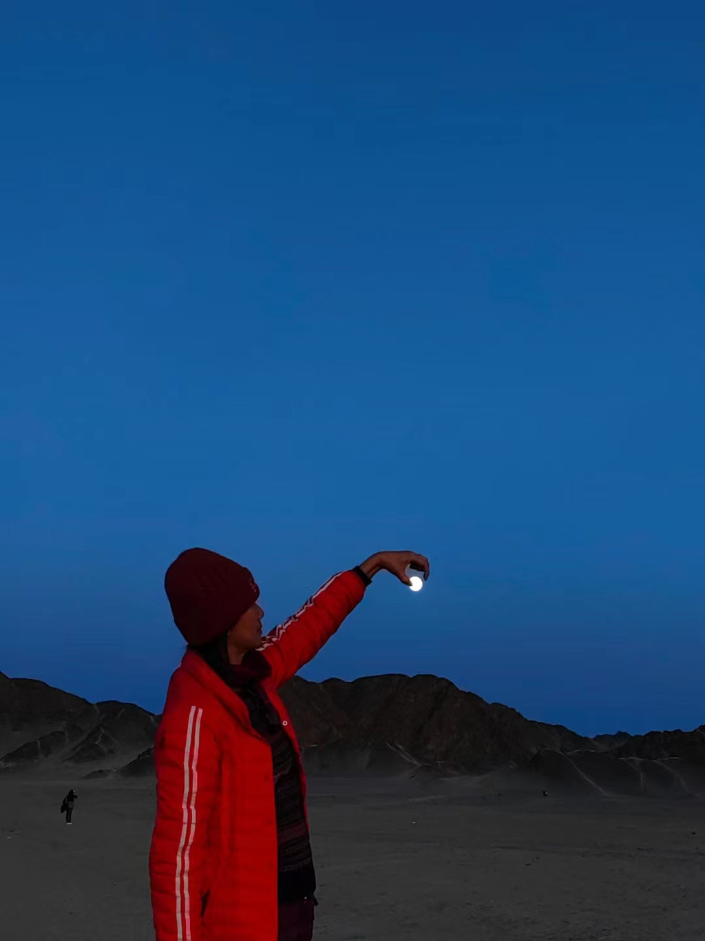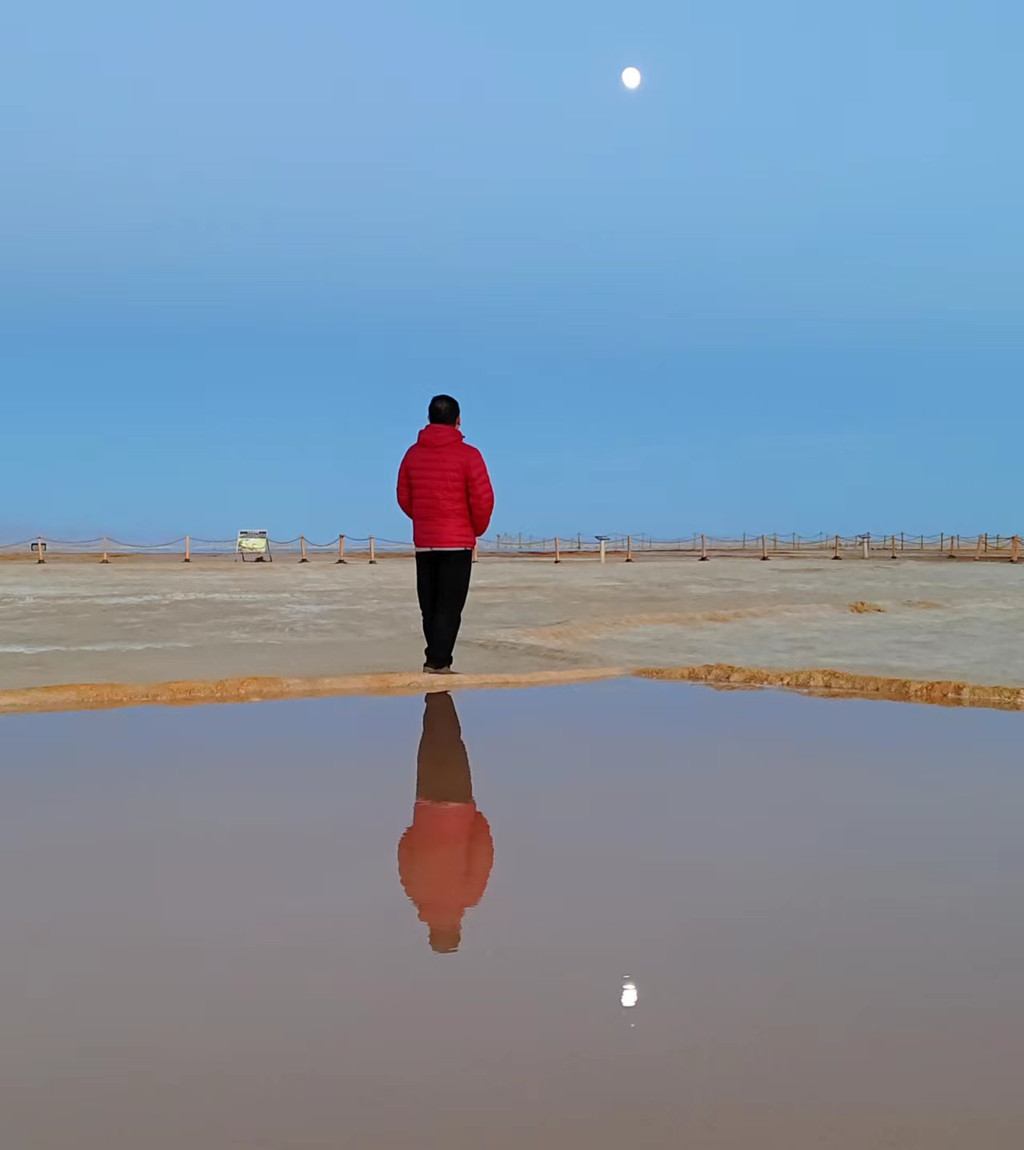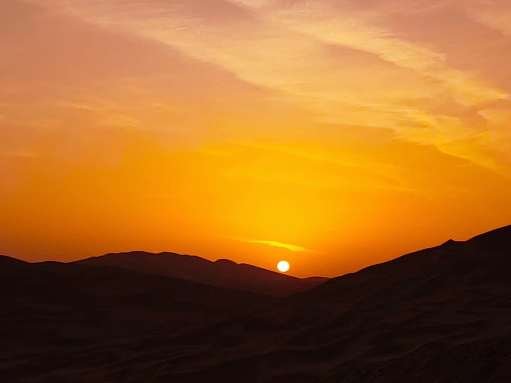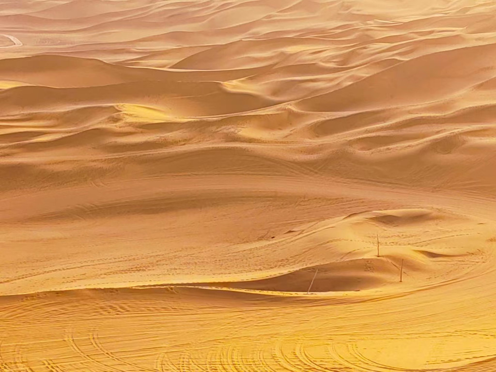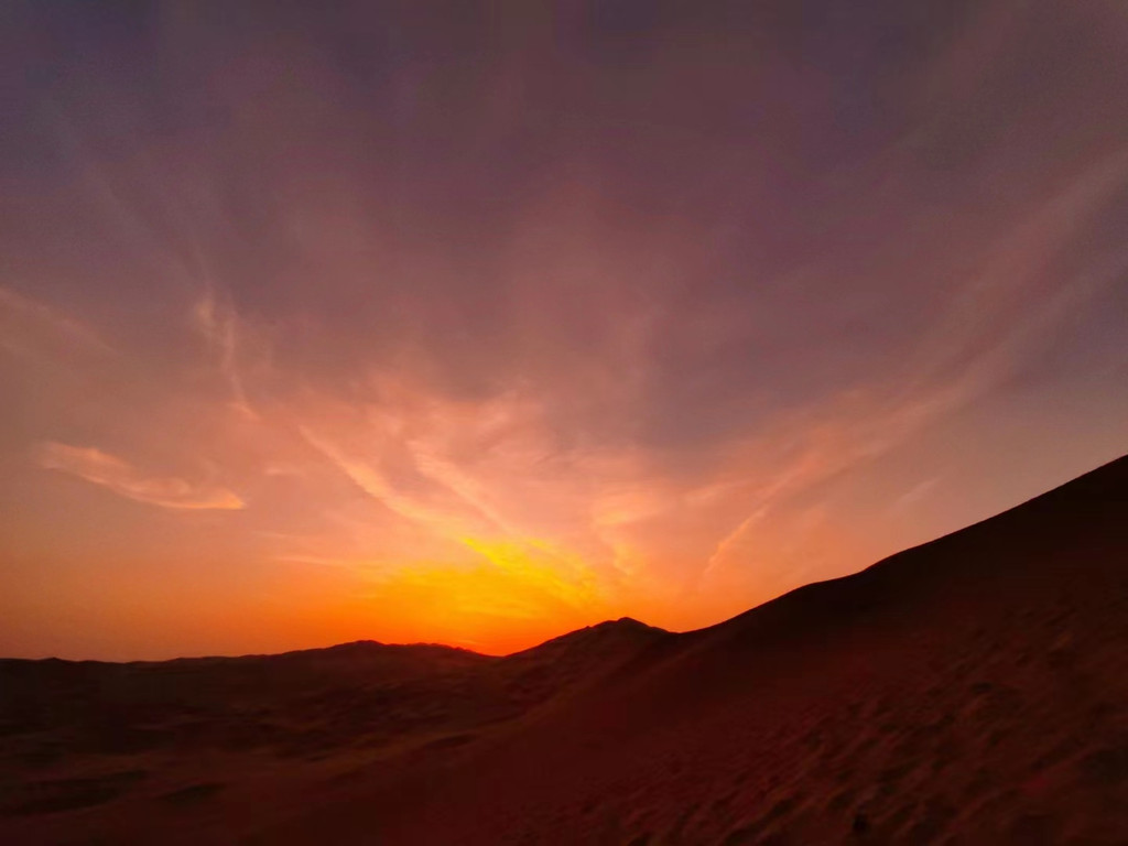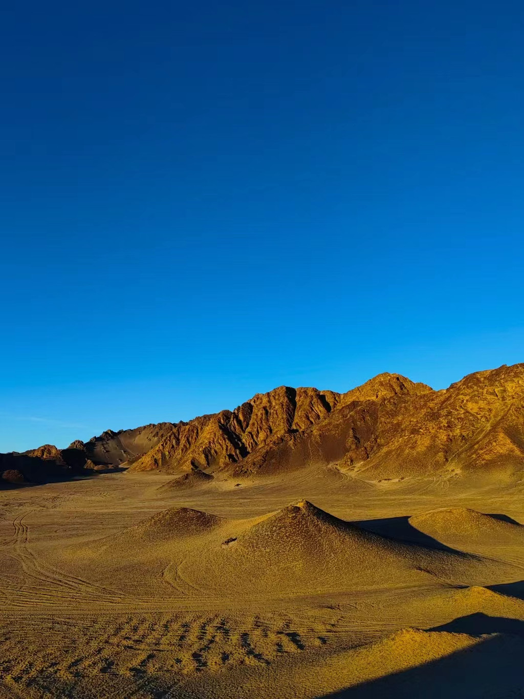 36小时内2进沙漠景区,因为昨晚来得太晚,天气又不给力,完美错过了日落,今天就起了个早,来个静待日出。8时2进景区时,就我们几人,感觉整个沙漠都是我们的当阳光喷薄而出,披洒在沙子的时候,整个沙漠都泛着金光,一瞬间,整个人都暖和了,之前手脚并用,大口喘着气攀爬的疲惫,手指冷得发麻的感觉都被融化了。