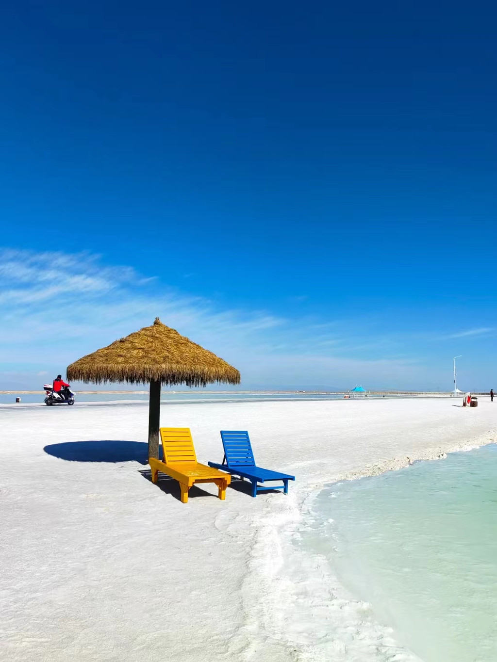 察尔汗盐湖是亚洲第一,世界第二大盐湖,是青海重要的产盐基地。一个乘坐间区车都要行驶20多公里的盐湖,眼之所及都是盐田,盐湖的湖水碧如翡翠,可惜烈日当空为有早早撤退,赶往下一站。