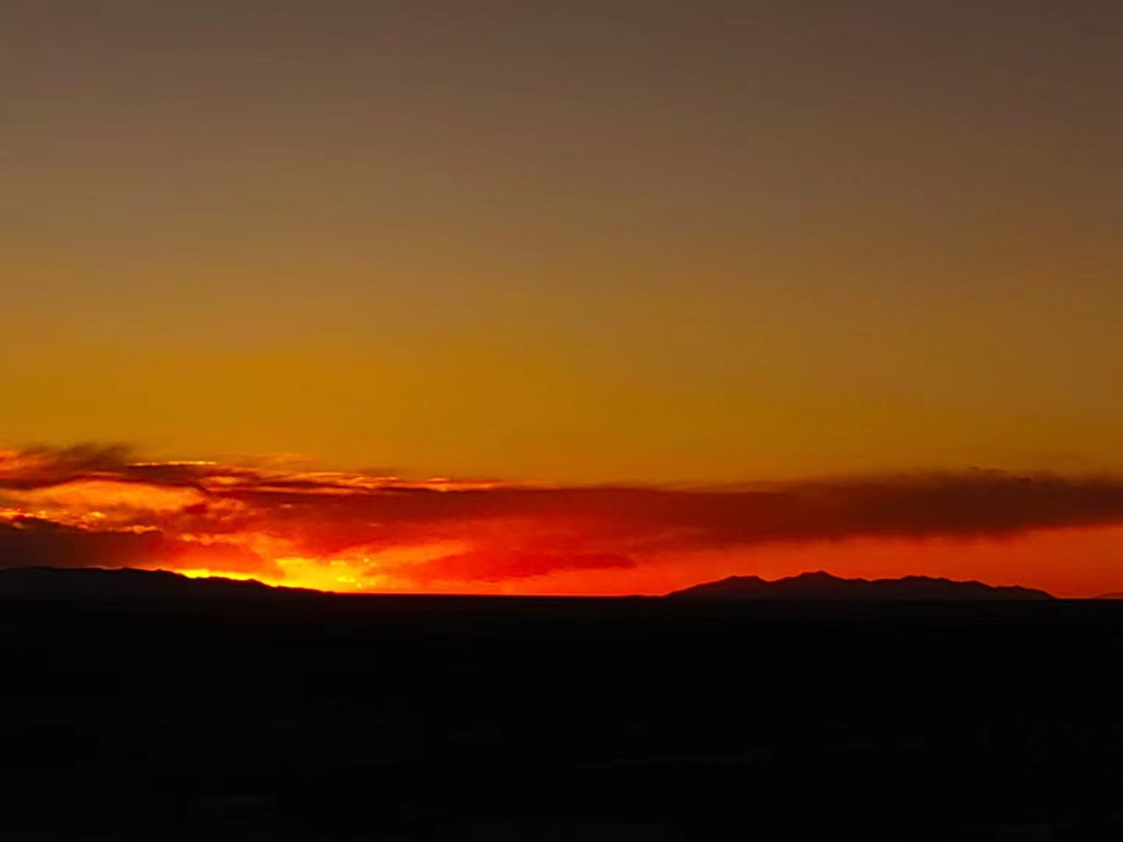 青海湖橡皮山海拔3817米,在青海湖与茶卡盐湖之间。今天从德令哈出发,地势一路抬升,沿路两边的昆仑山顶已经白雪皑皑,到达青藏第一关橡皮山时,海拔已经到了3817米,此时的山顶更是冰天雪地。翻过橡皮山后,到黑马河镇用过午饭后,沿着青海湖旅游专线来到青海湖二朗剑风景区,小伙伴们稍作休息后,转入310国道后在去贵德路上很幸运的邂逅了一幕灿烂的日落西山。