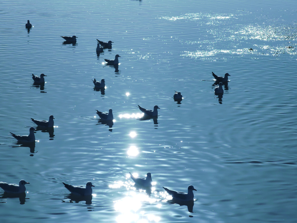 小伙伴们来到湖边,带上了面包碎等食物抛喂红嘴鸥,挥手、驱赶之间,一滩鸥鹭腾跃展翅而起,追寻食物。